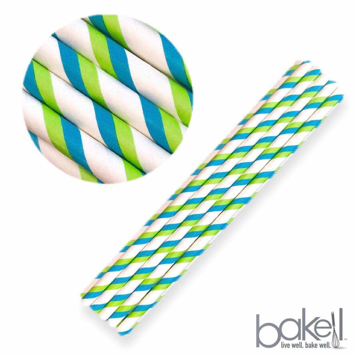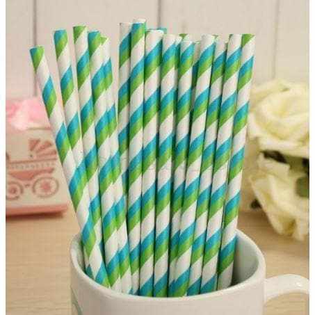 Green and Blue Candy Cane Stripes Cake Pop Party Straws