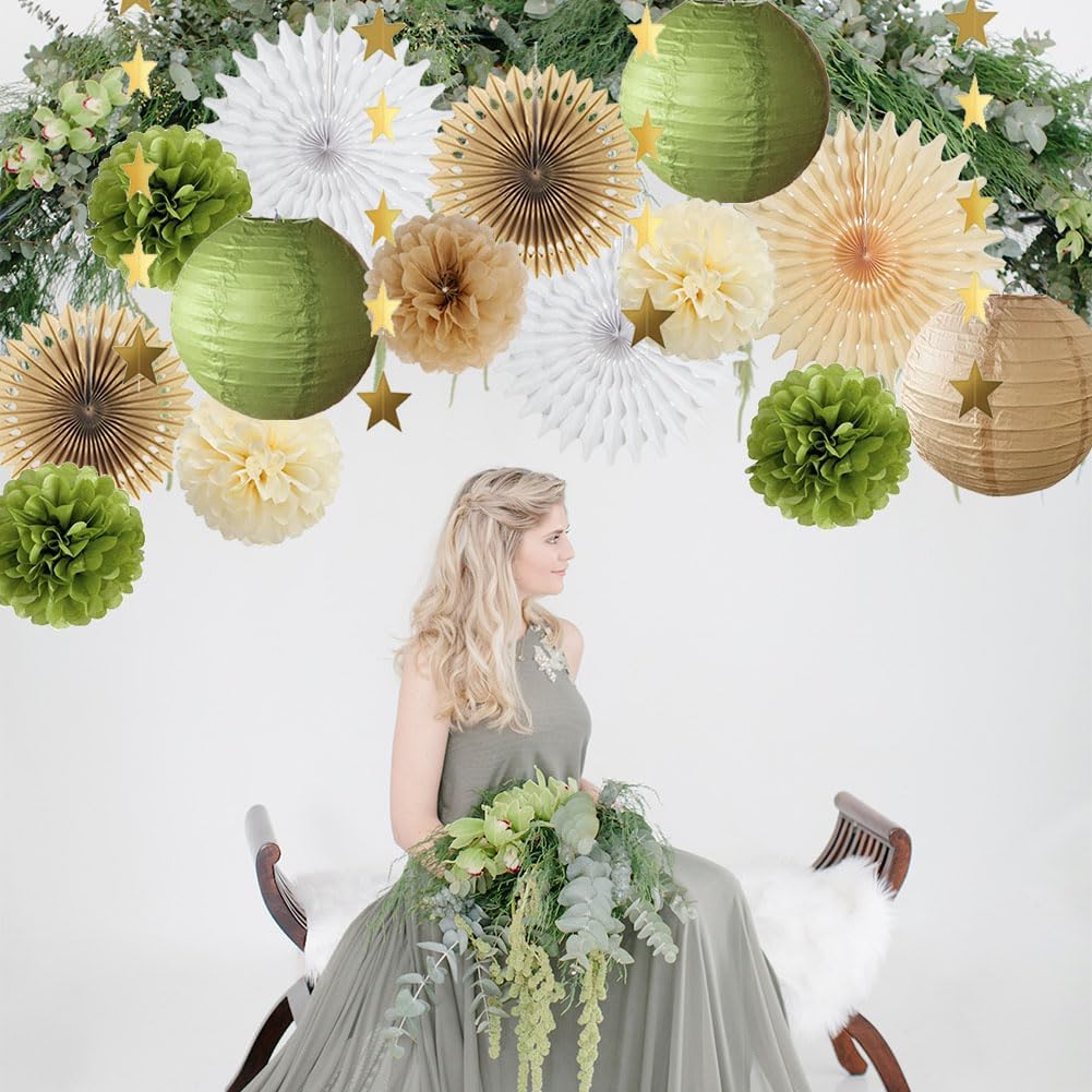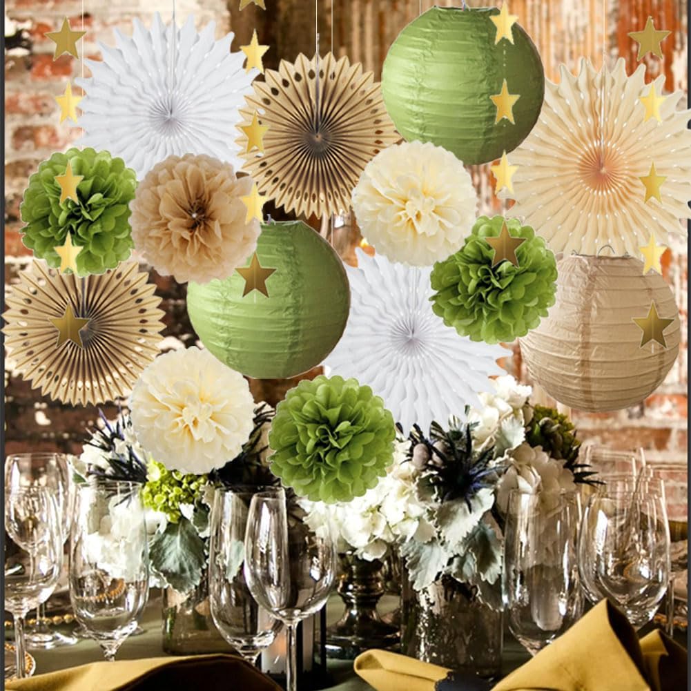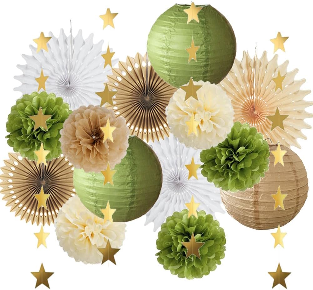 Green and Brown Party Decorations Paper Lanterns