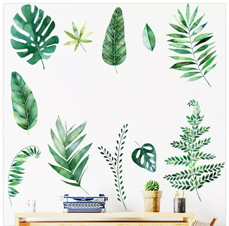 Green Assorted Tropical Leaves WALL STICKER Hanging Leaves Removable PVC Home