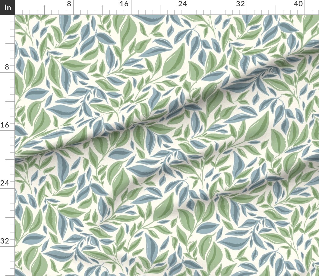 Green Blue Vine Spring Garden Climbing Vines Botanical Calm Serene Rustic Farmhouse Cottage Custom Printed Fabric by Spoonflower Various Fabrics by the Yard or Fat Quarter