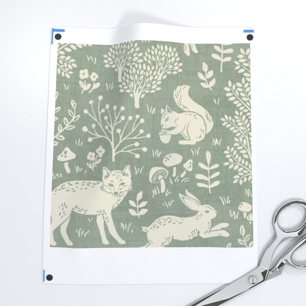 Green Botanical Scandinavian Nursery Forest Animals Deer Fox Rabbit Squirrel Country Rustic Farmhouse Cottagecore Neutral Custom Printed Fabric by Spoonflower Various Fabrics by the Yard or Fat Quarter
