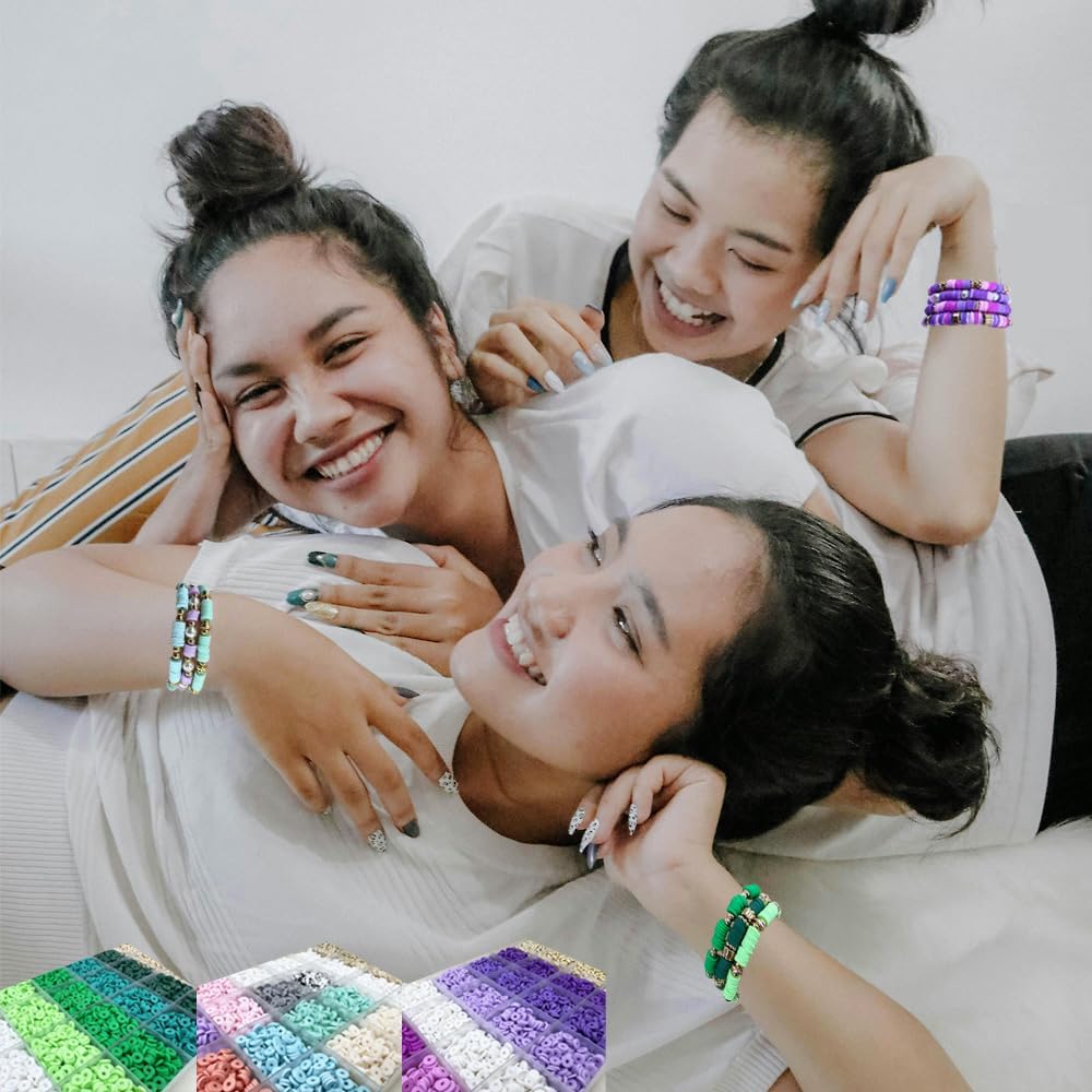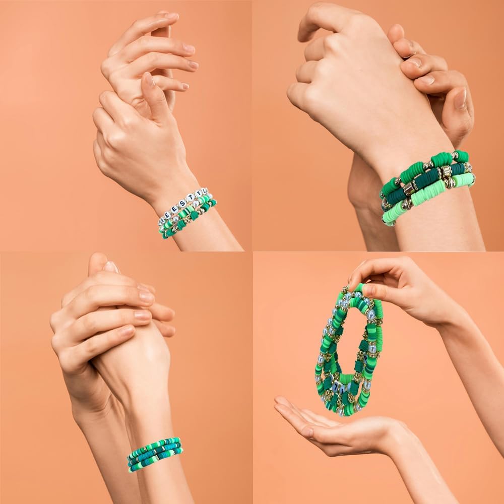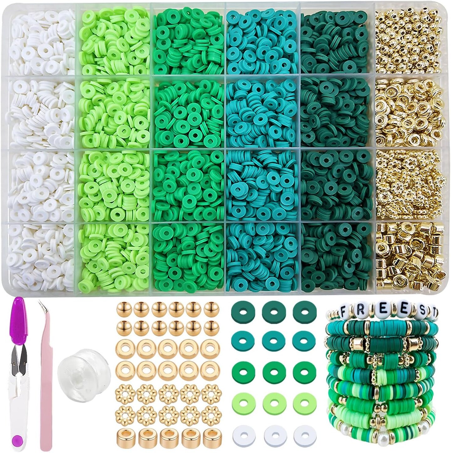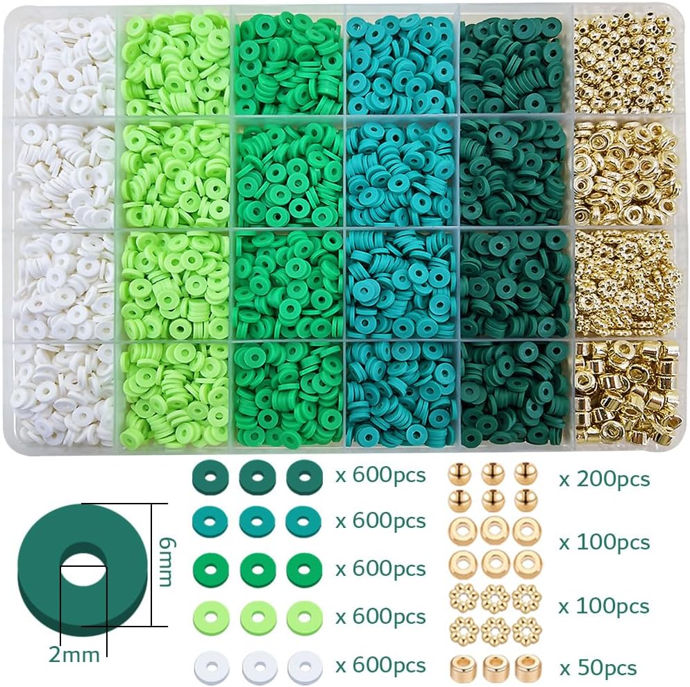 Green Clay Beads Kit – Heishi Beads, Clay Charms & Gold Spacers for Friendship Bracelets, Jewelry Making, Crafts, Concerts, Raves & Gifts