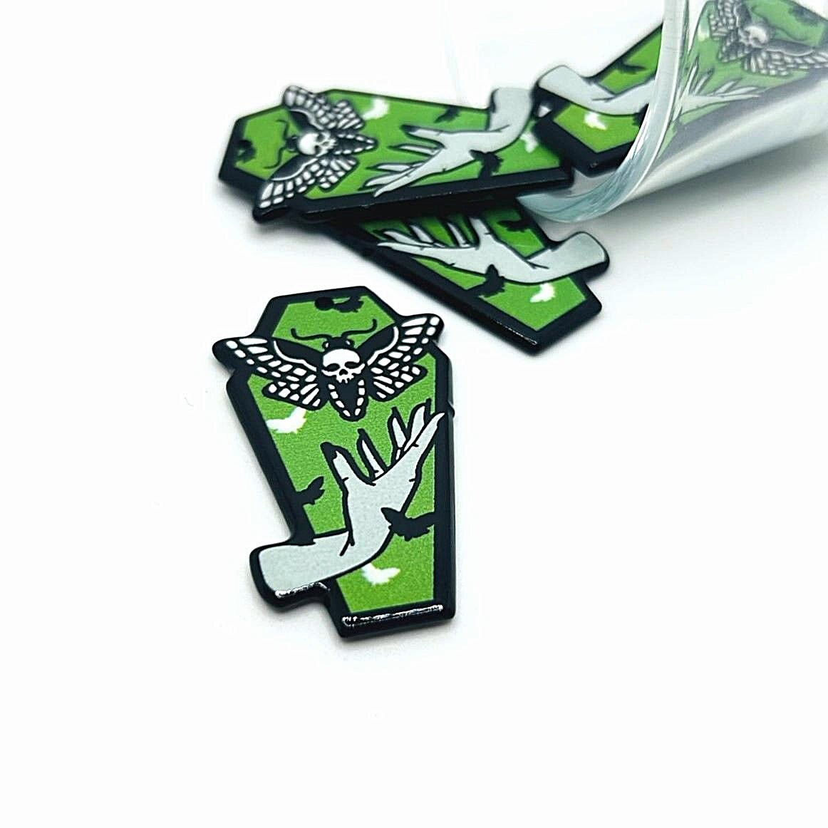 Green Coffin with Death's Head Moth Charms, 42.5x25mm