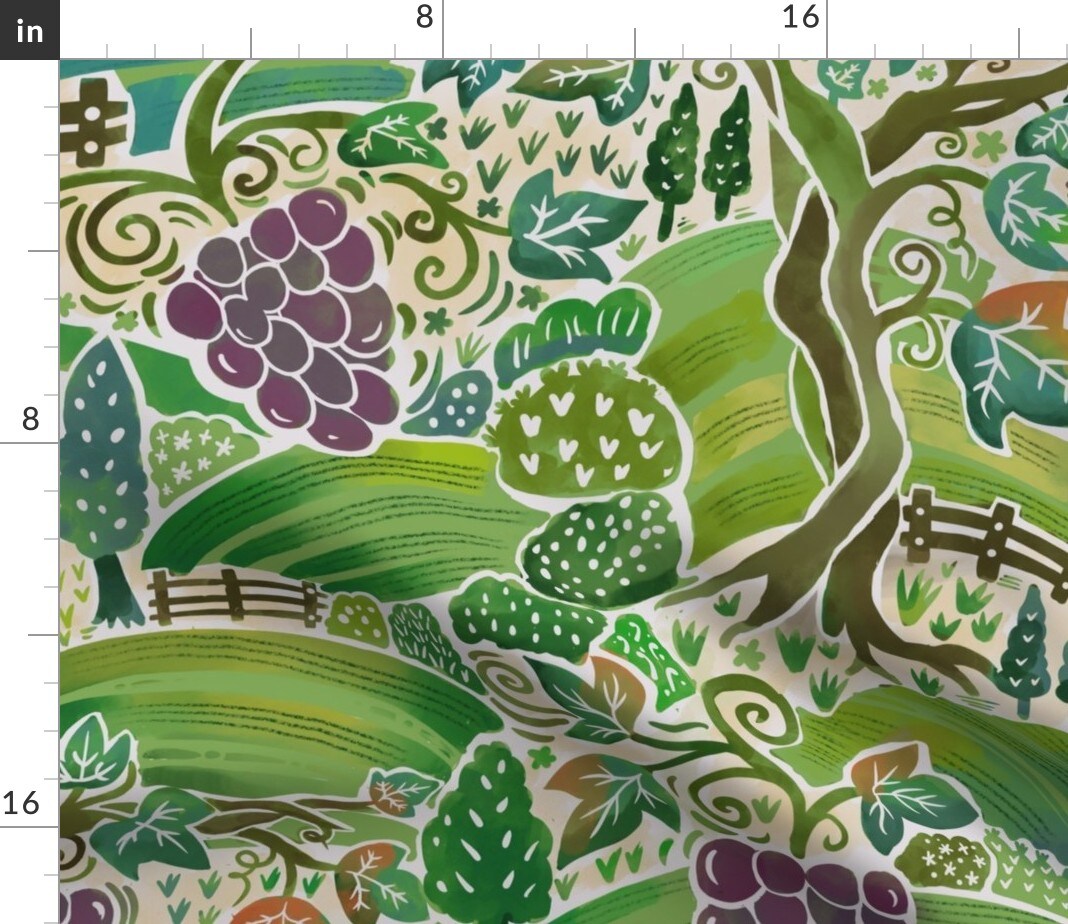 Green Countryside Grapes Italy Vineyard Tuscany Meadows Farmland Farms Red Wine Purple Large Scale Custom Printed Fabric by Spoonflower Various Fabrics by the Yard or Fat Quarter