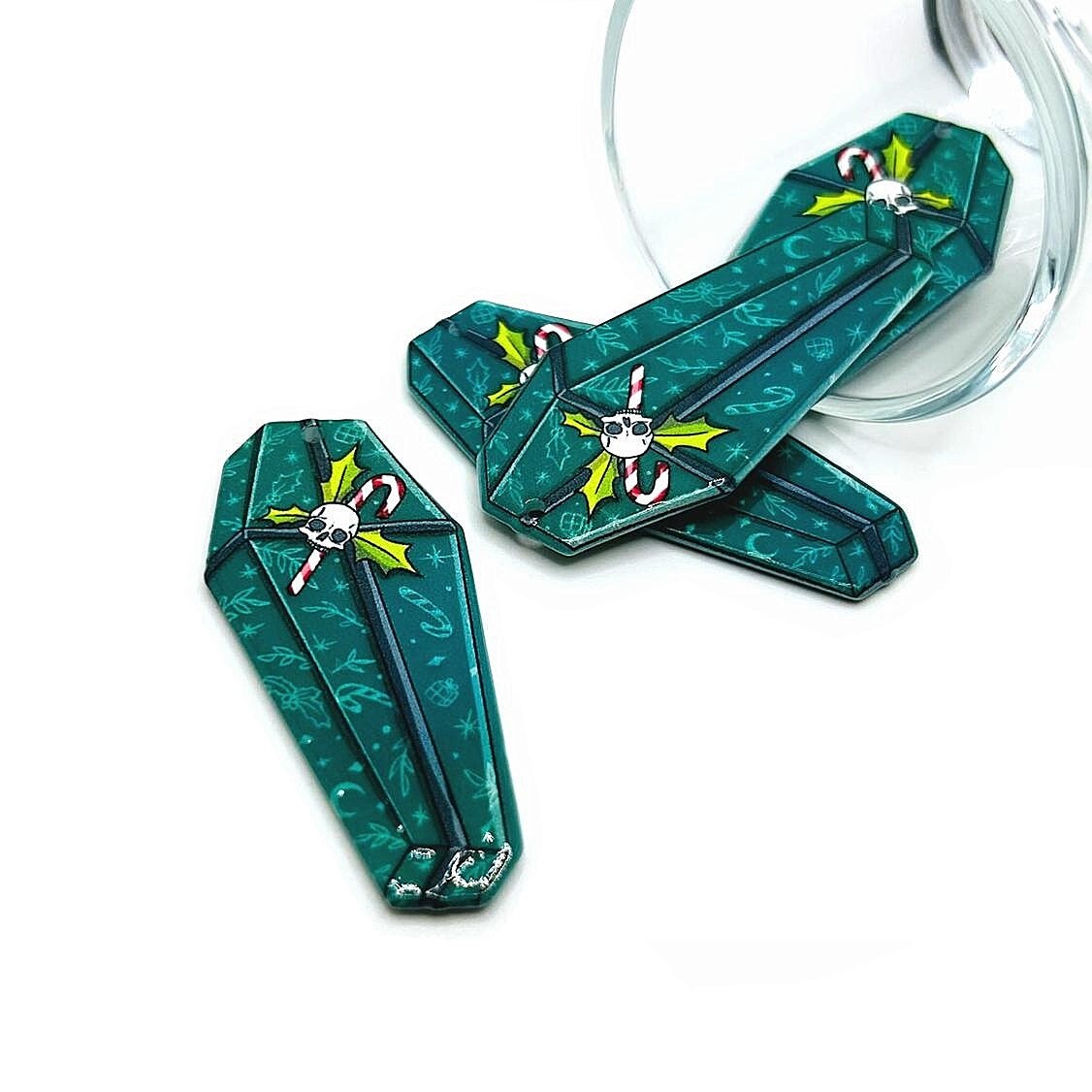 Green Creepy Christmas Coffin Charms, 52x25mm