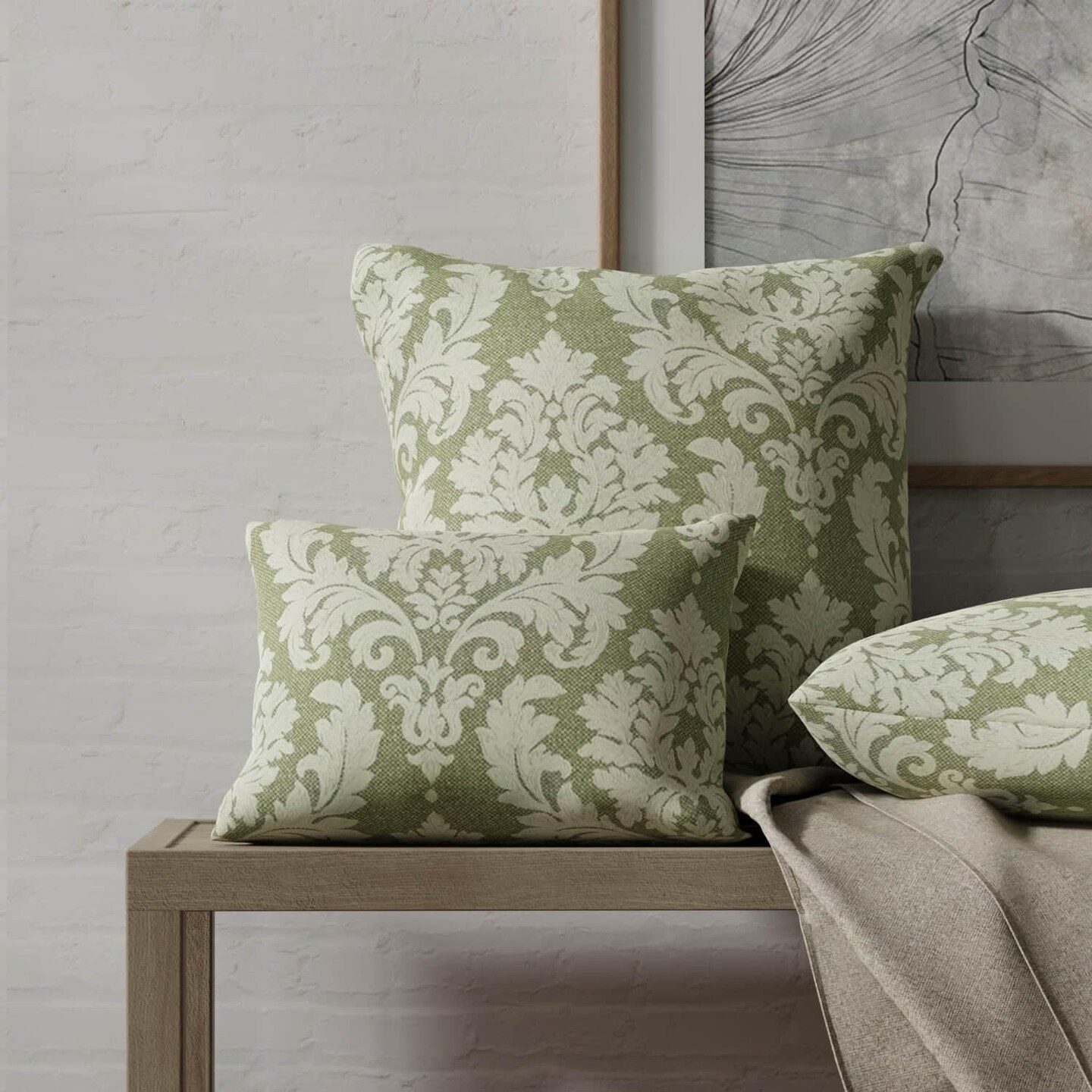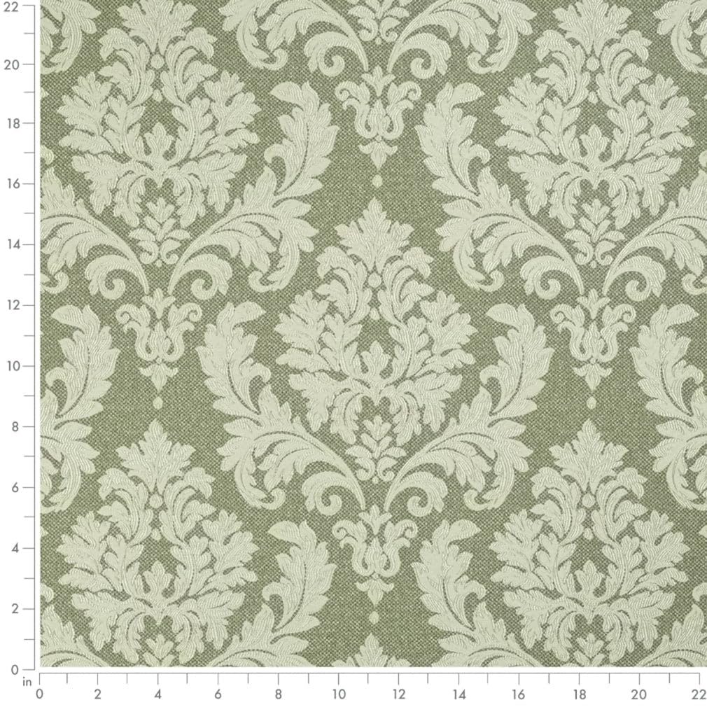 Green Damask Woven Pattern Upholstery Fabric by The Yard - SKU: Huey Juniper