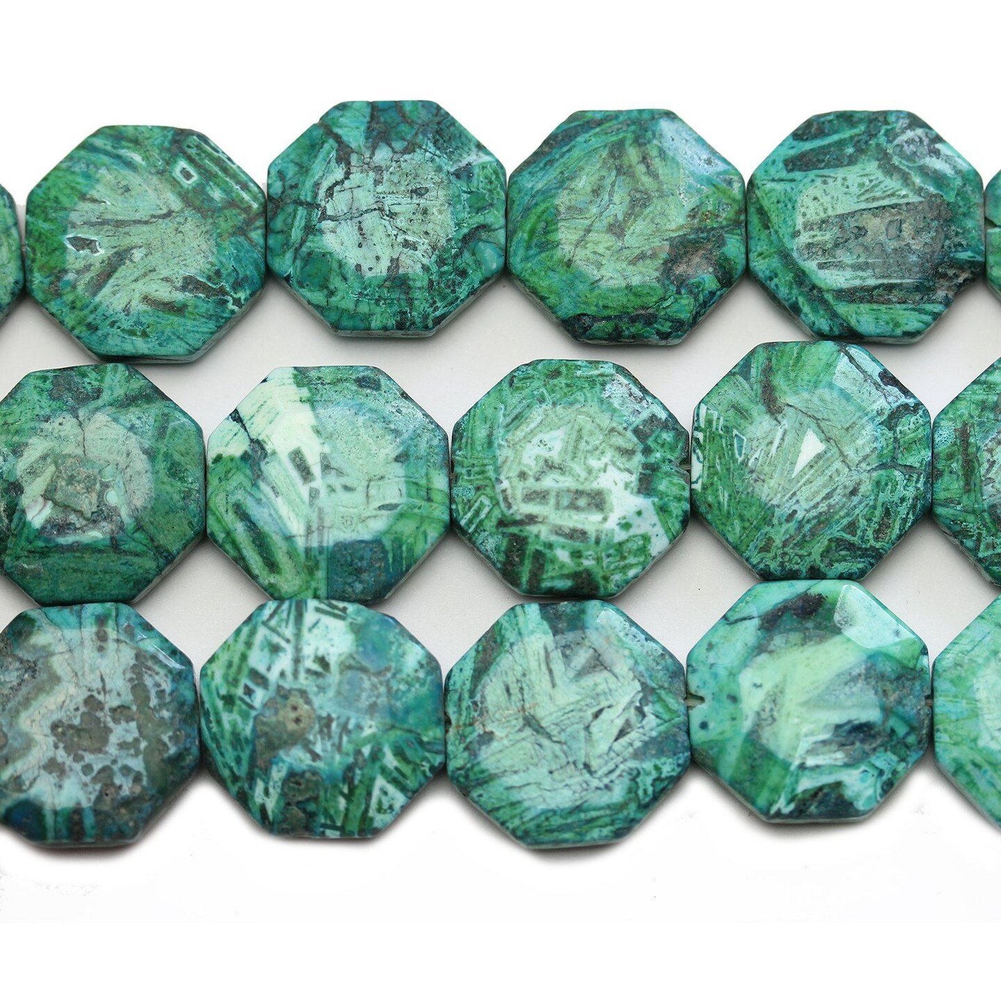 Green Dyed Natural Conglomerate Stone Hexagon Disk Beads 22mm