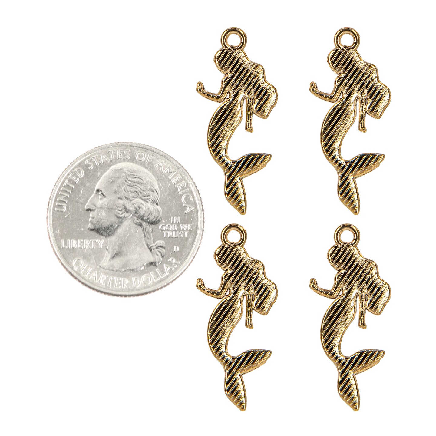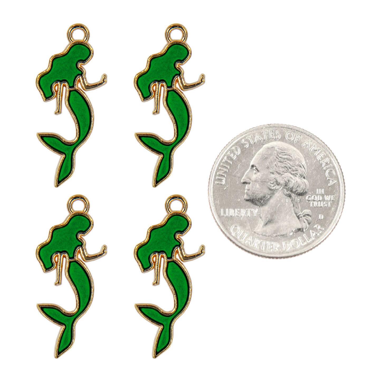 Green Enamel on Gold Mermaid Charms - Set of Four - XXX - ZG-C65