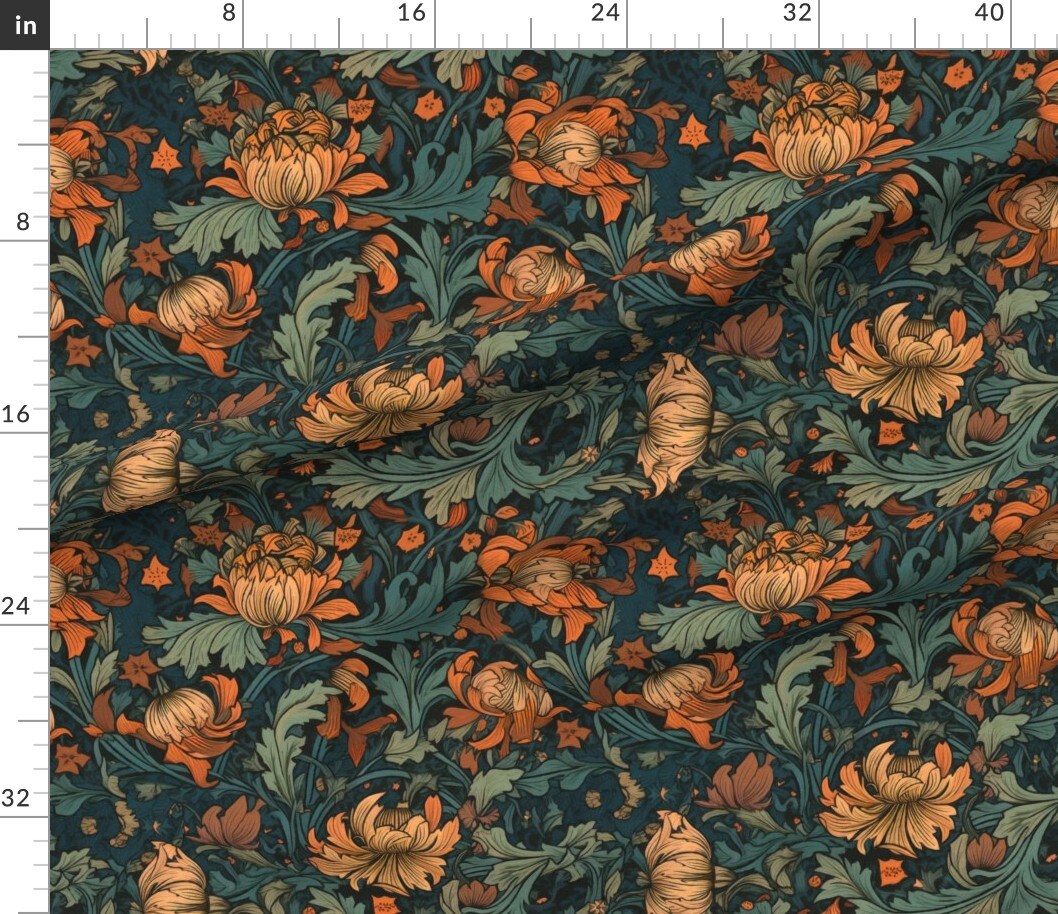 Green Floral Dark Vibrant Art Nouveau Baroque Rococo Acanthus Large Scale Victorian Custom Printed Fabric by Spoonflower Various Fabrics by the Yard or Fat Quarter