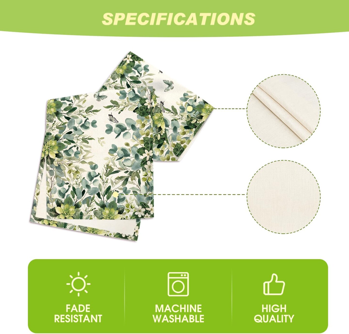 Green Flowers Floral Eucalyptus Summer Table Runner, Seasonal Spring Kitchen Dining Table Decoration for Home Party Decor