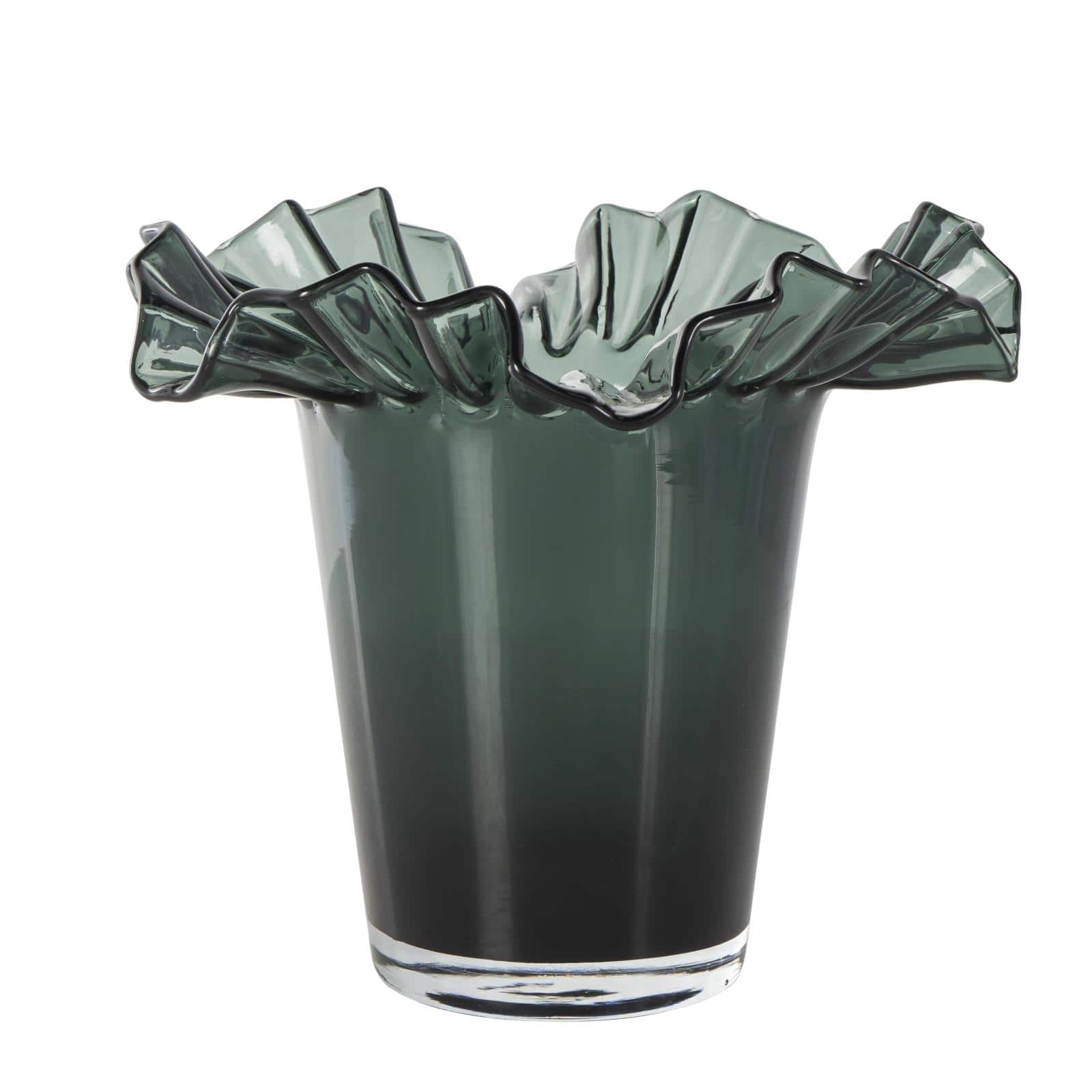 Green Glass Floral Tulip Inspired Ombre Vase with Wavy Opening
