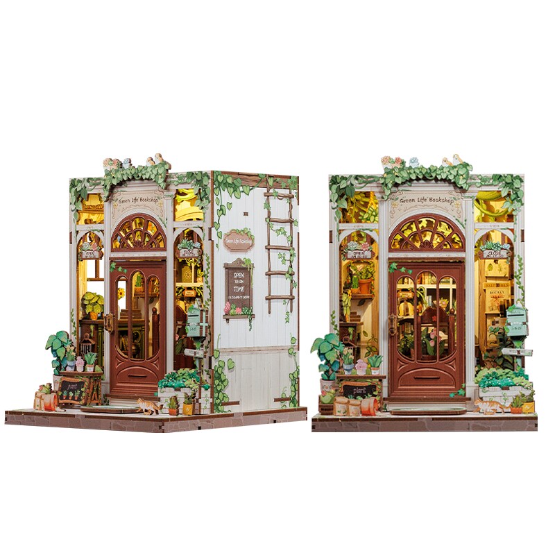Green Life Bookshop Dollhouse Kit - Miniature Wizardi Roombox Kit with LED Light F07M51-88-CWGC203