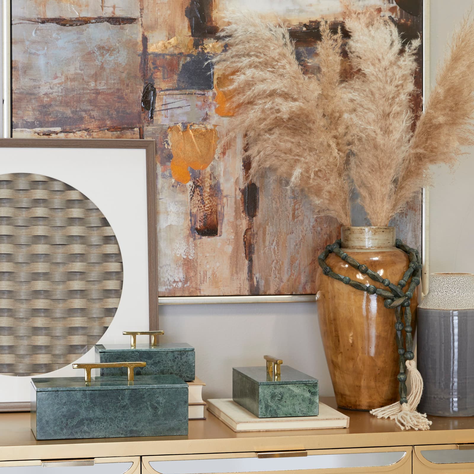 Green Marble Box with Gold Bar Handles Set