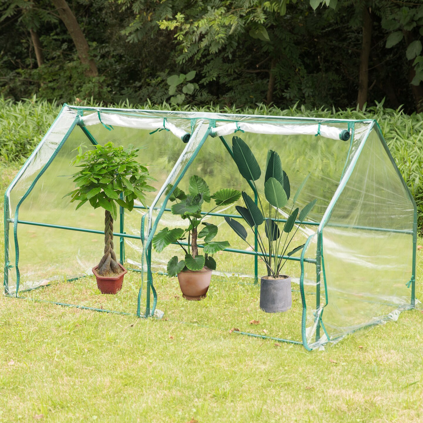 Green Outdoor Waterproof Portable Plant Greenhouse with 2 Clear Zippered Windows