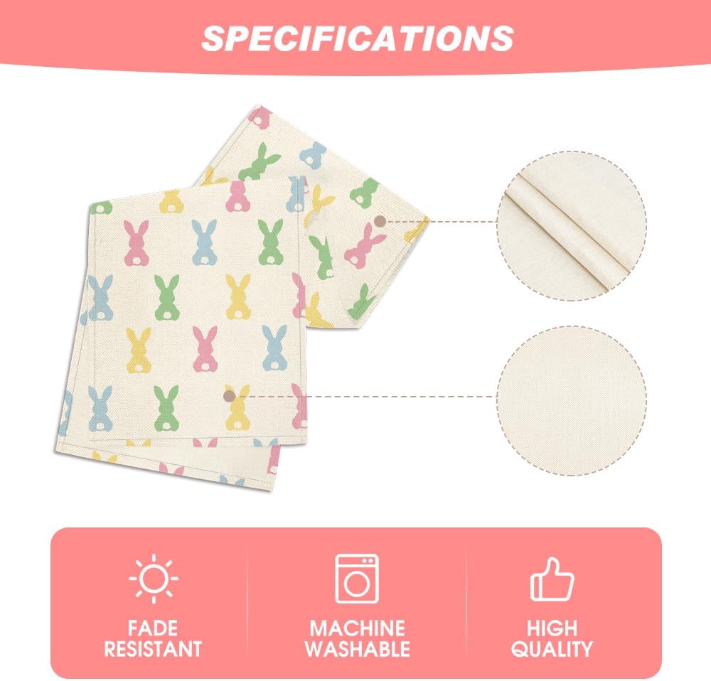Green Pink Bunny Rabbit Easter Table Runner, Spring Kitchen Dining Table Decoration for Home Party Decor 13x72 Inch