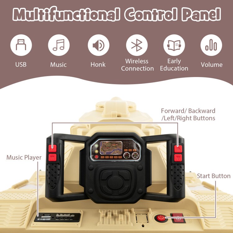 Green Plastic 12V Kids Ride On Tank with Rotating Turret Missiles