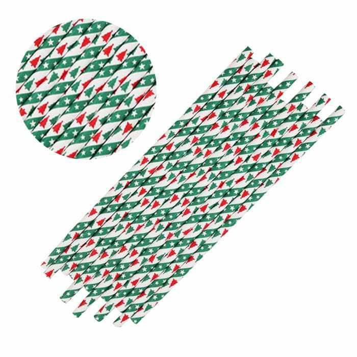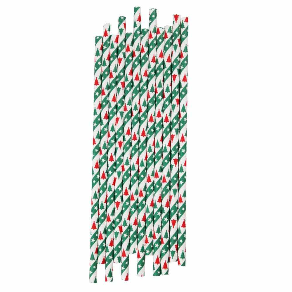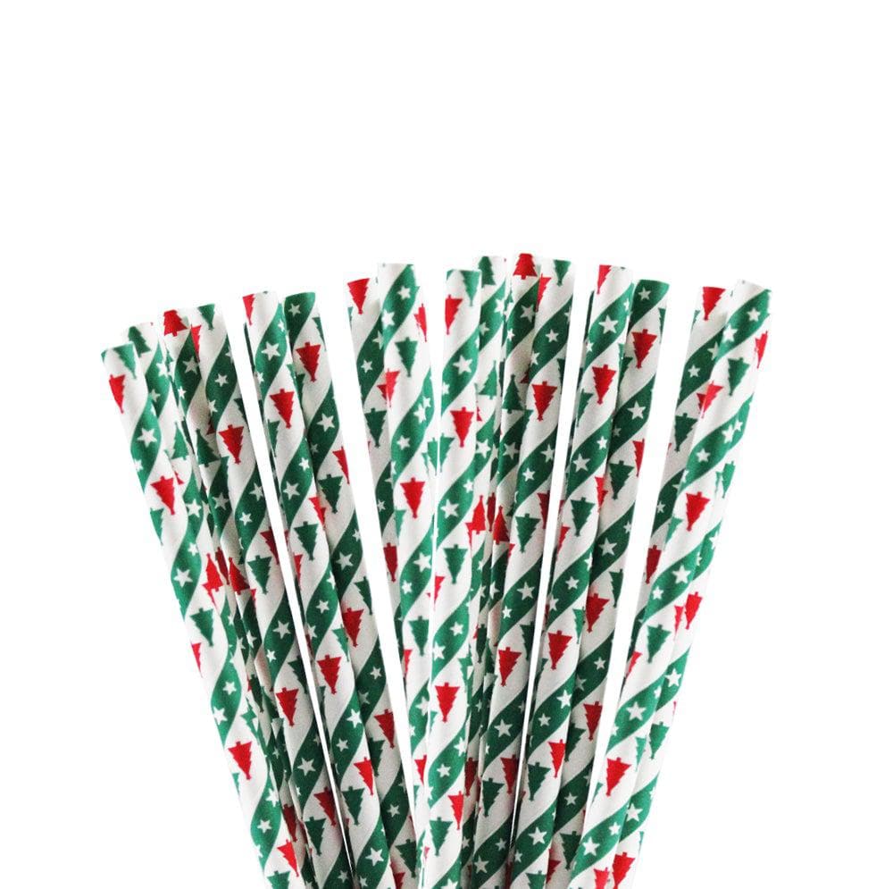 Green & Red Christmas Trees Cake Pop Party Straws