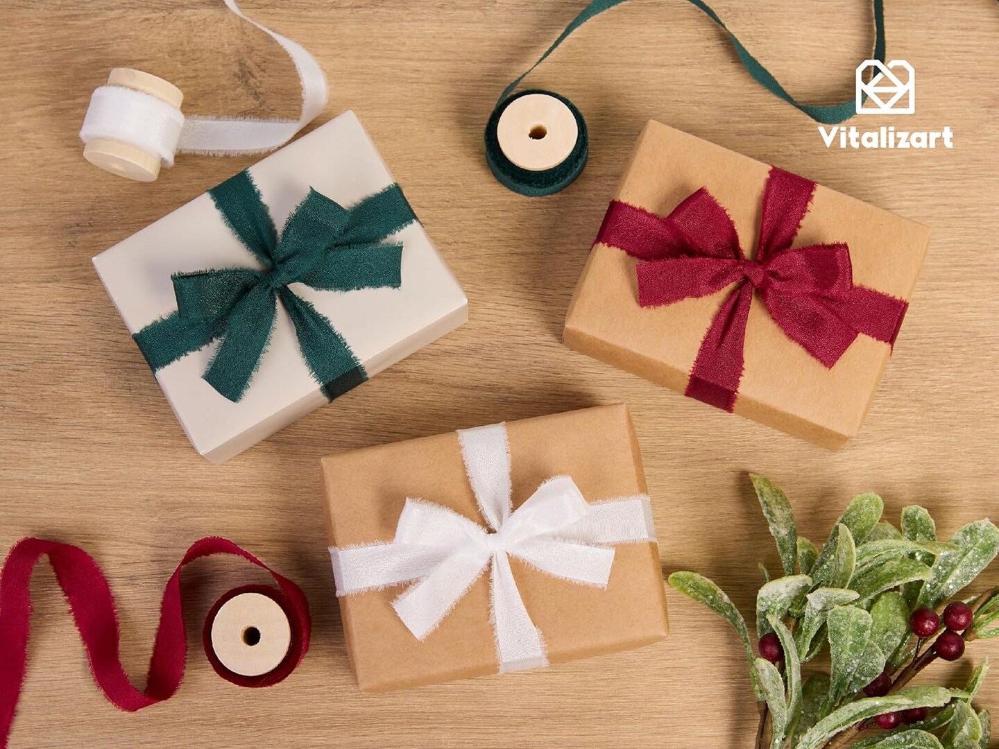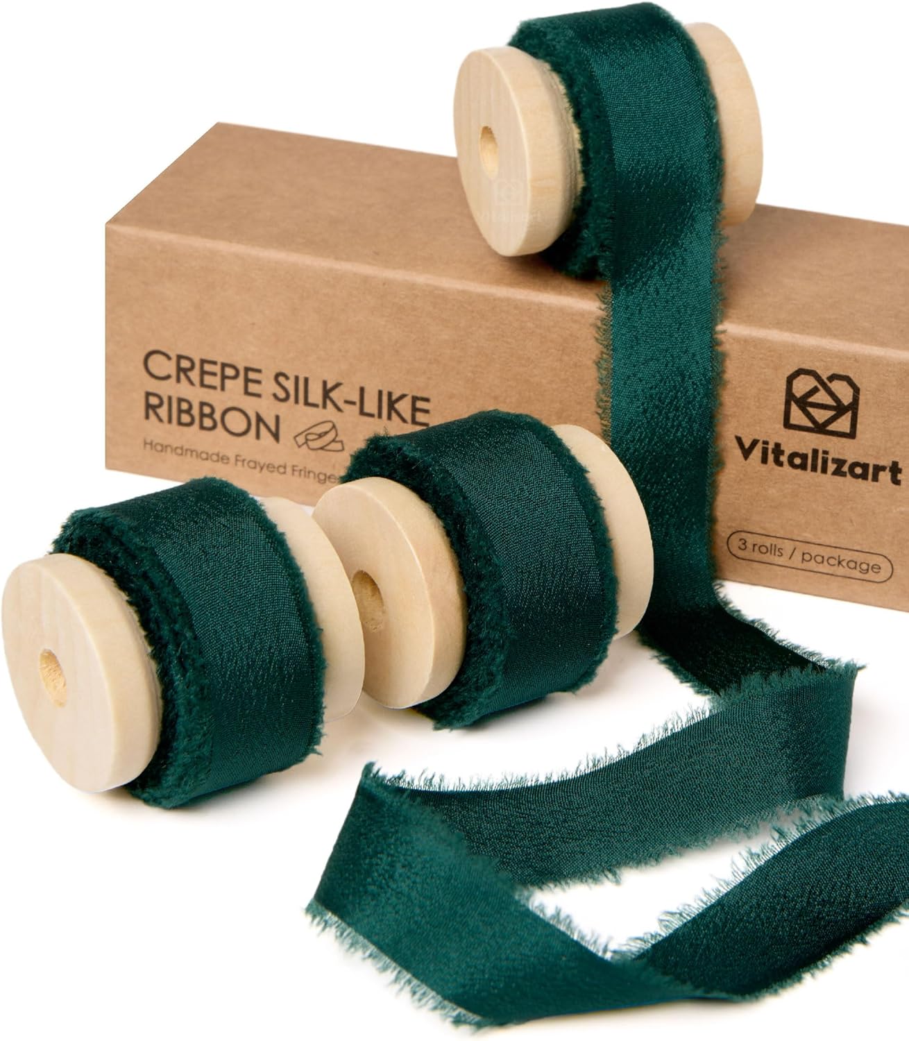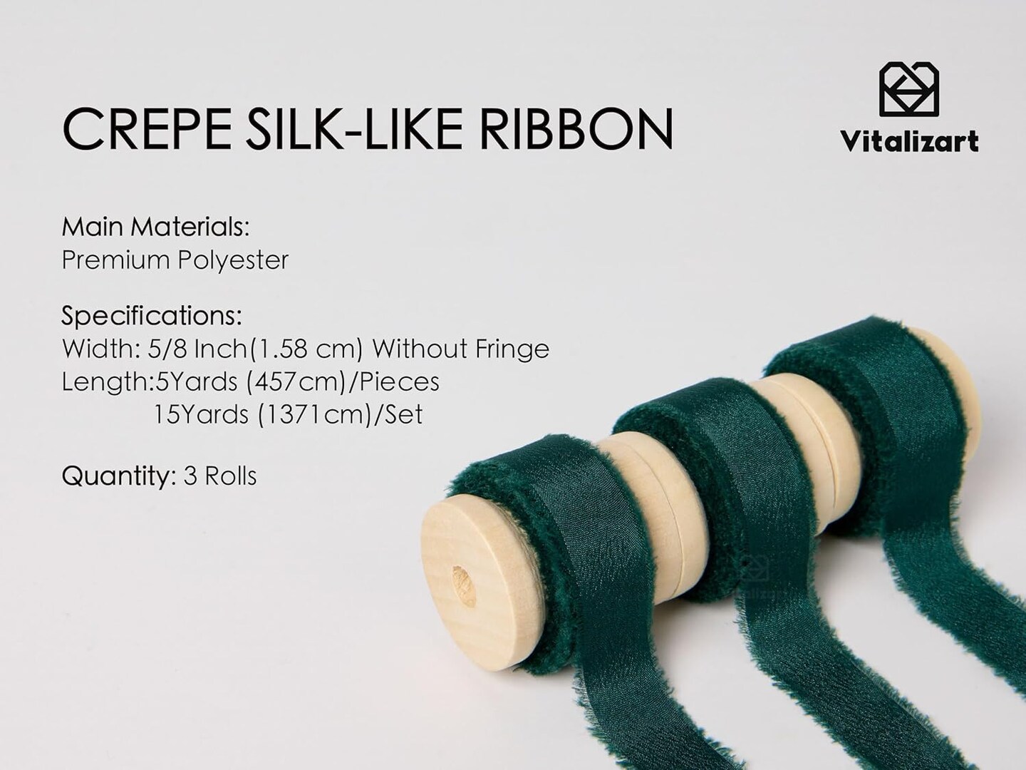 Green Ribbon Double Face Silky Satin Ribbon 5/8" Crepe Silk Like Handmade Frayed Fringe for Christmas Gift Wrapping Wedding Bridal Bouquets Holiday Decor 15 Yard Dark Green