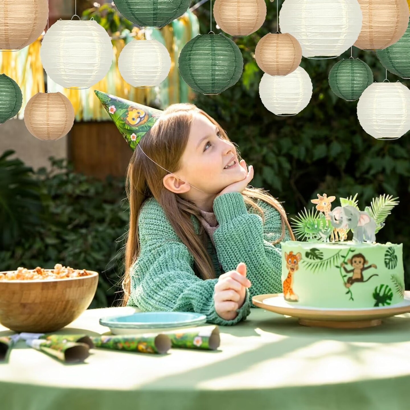 Green Round Chinese Paper Lanterns Decorative 15pcs Hanging Paper Lantern for Rustic Wedding Jungle Wonderland Themed Birthday Party Baby
