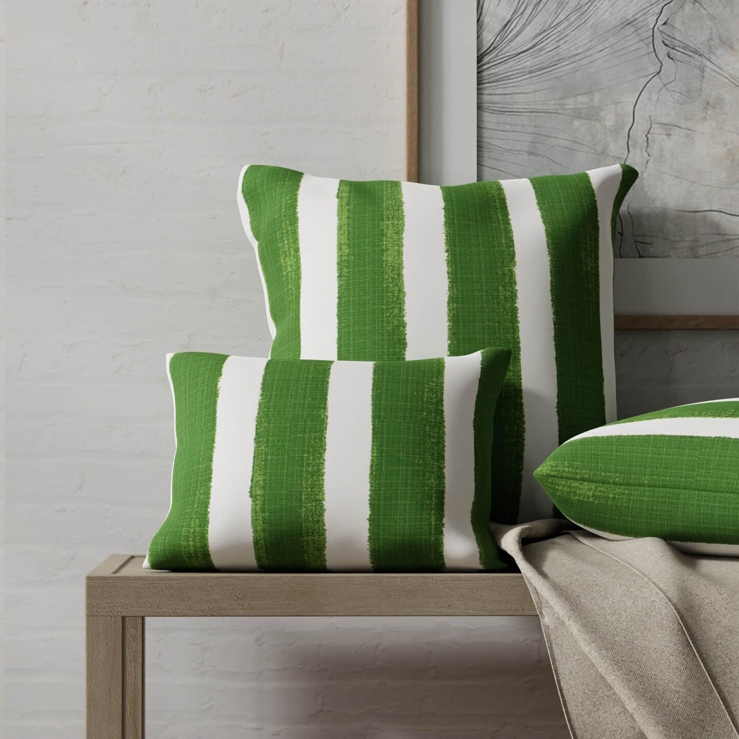 Green Stain Resistant Performance Pet Friendly Stripe Print Upholstery Fabric by The Yard - SKU: Michaela Green