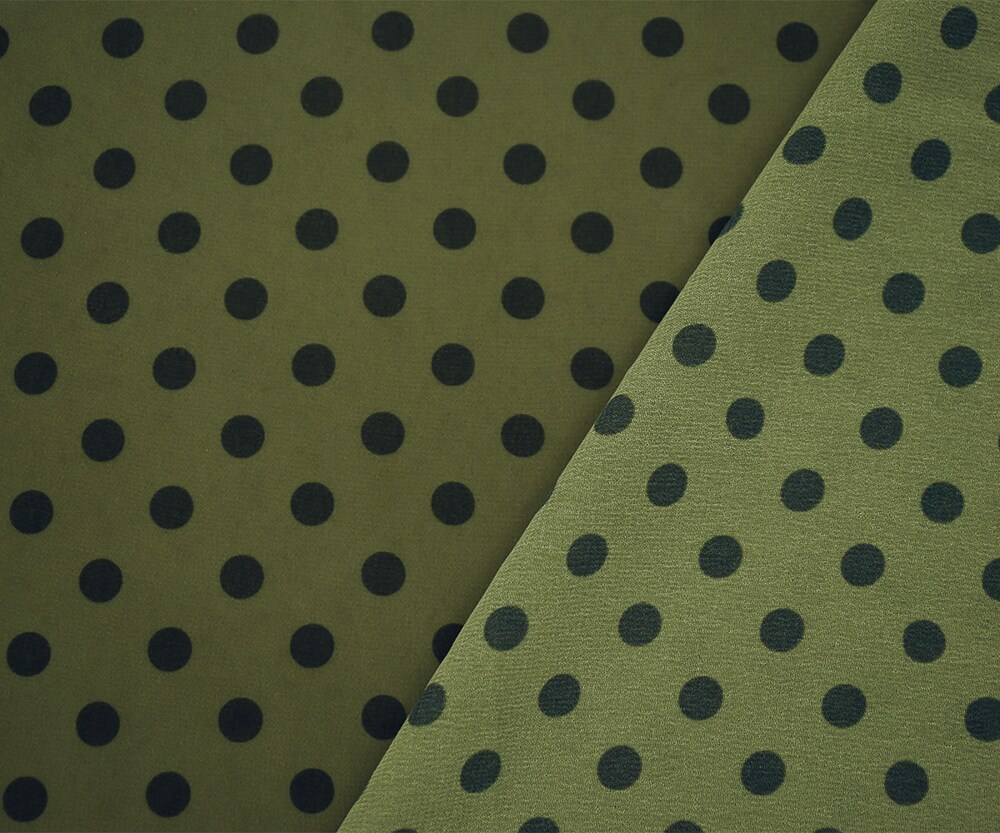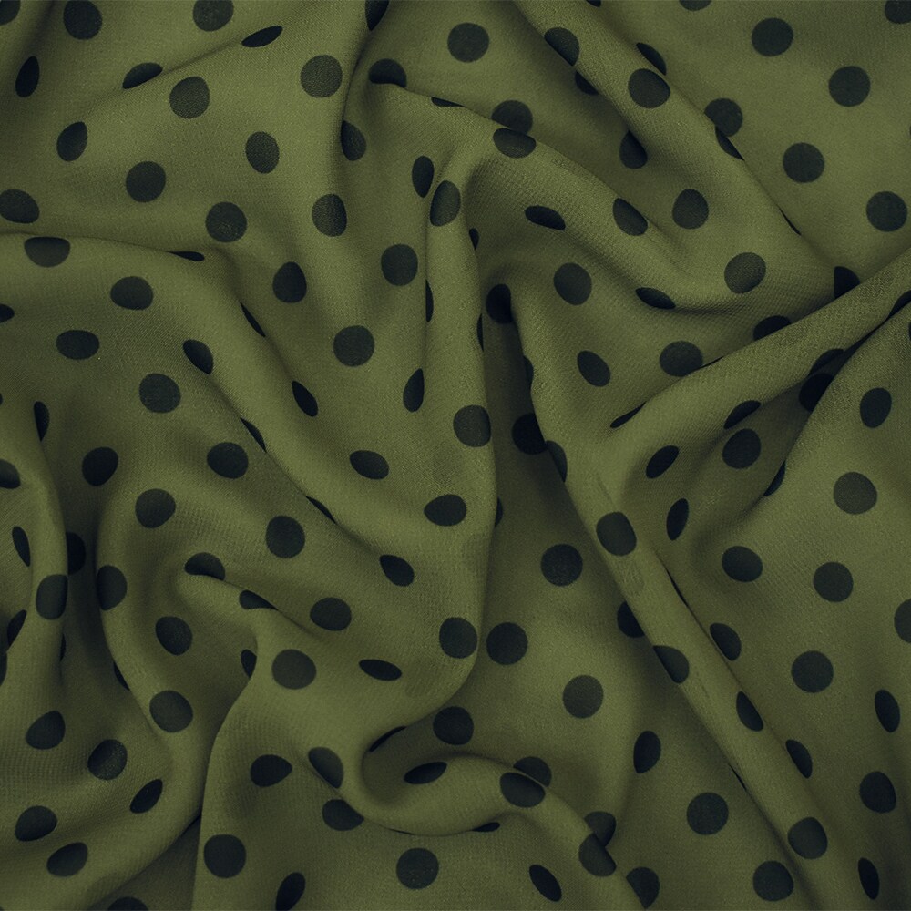 Green-Black Polka Dots Printed Poly Chiffon Woven Fabric By the Yard