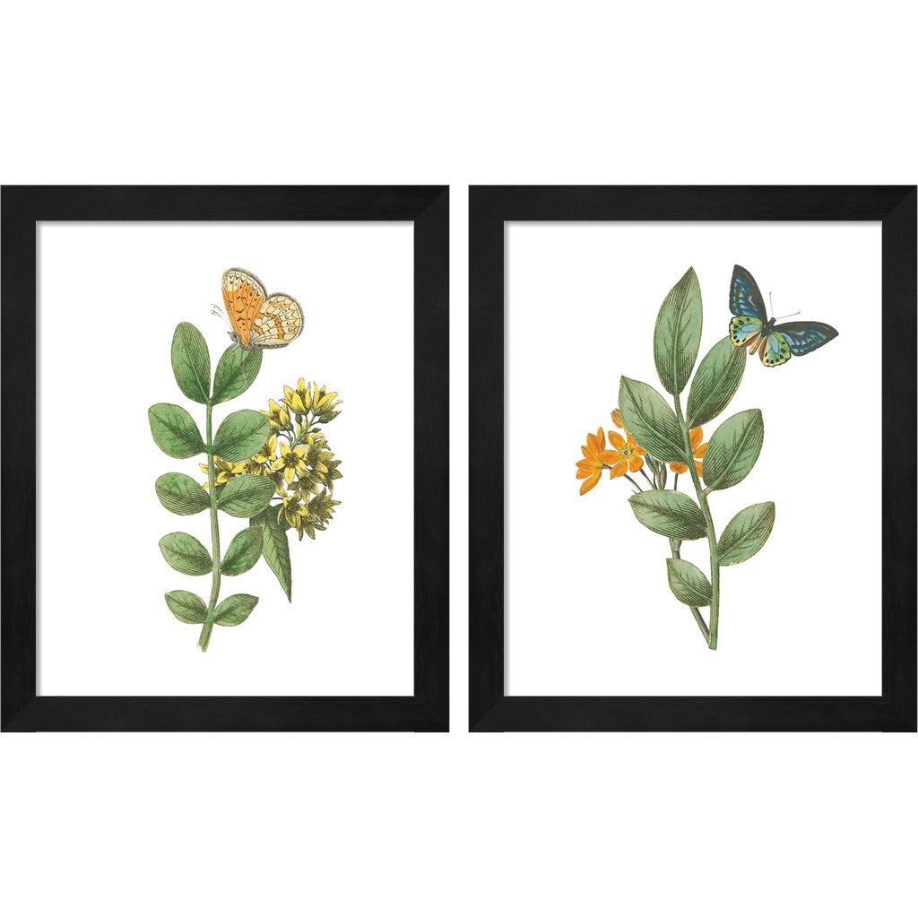 Greenery Butterflies by Wild Apple Portfolio, 2 Piece Black Framed Art Set