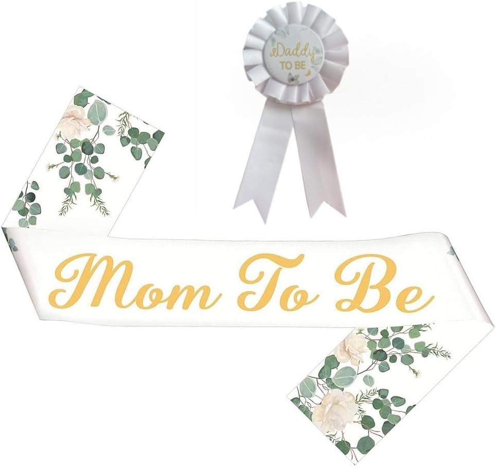 Greenery Mom to Be Sash & Daddy to Be Badge Pins for Baby Shower Gender Reveal Party Decorations