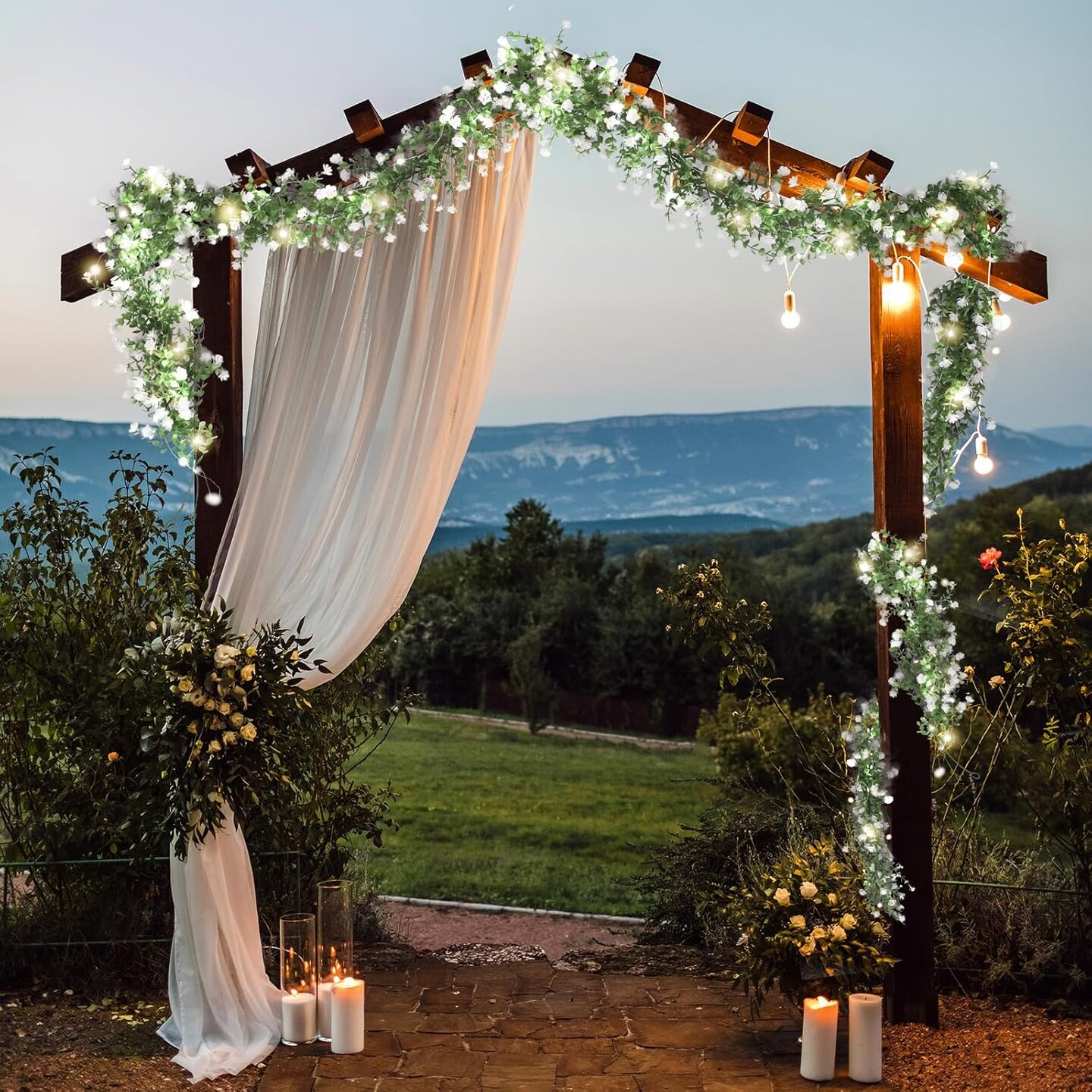 Greenery Vines Garland 3 Pack Artifical Garland with Lights Hanging Greenery Table Garland Greenery Artificial Green Leaves for Mantel Wedding Backdrop Arch Wall Indoor Outdoor Decor