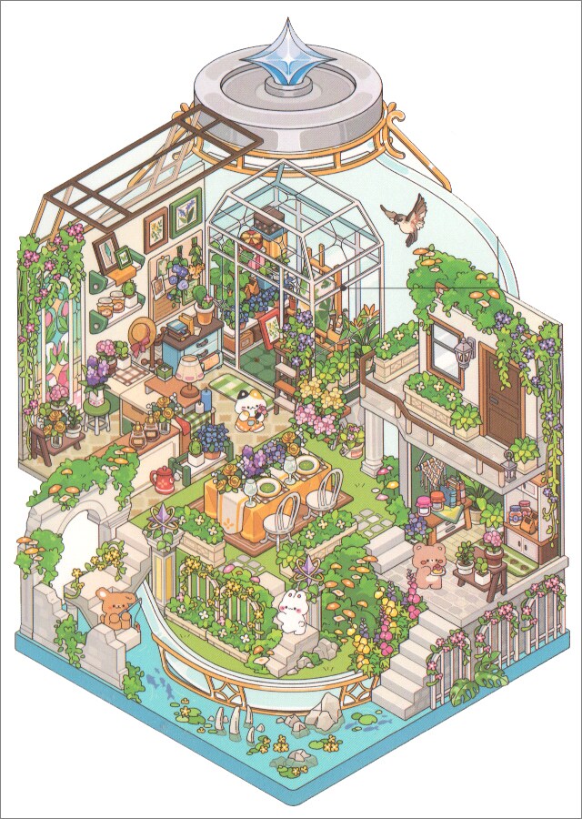 Greenhouse Flower Party Isometric Stickers for DIY Scene, Adorabilities