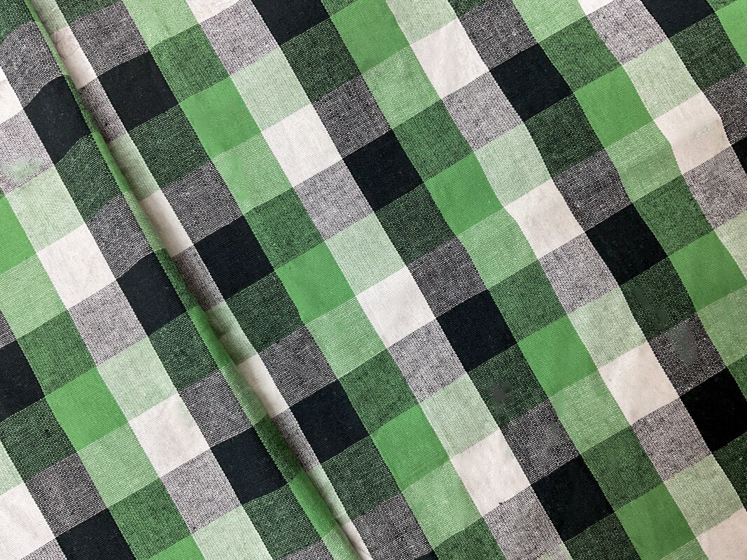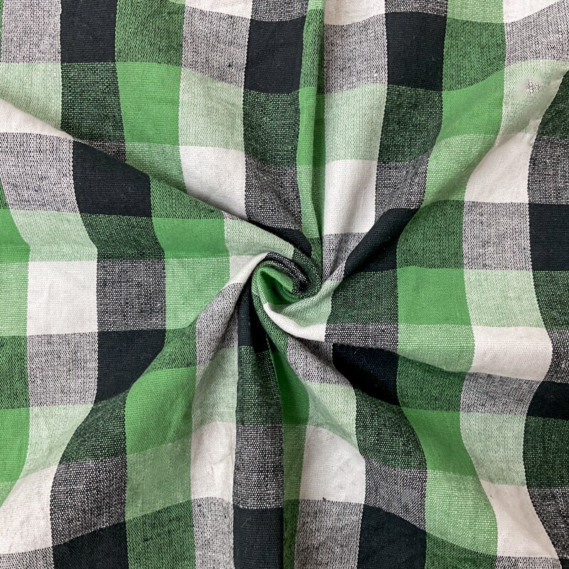 Green-Multi Cotton Spandex Stretch Check Gingham Woven Fabric By the Yard