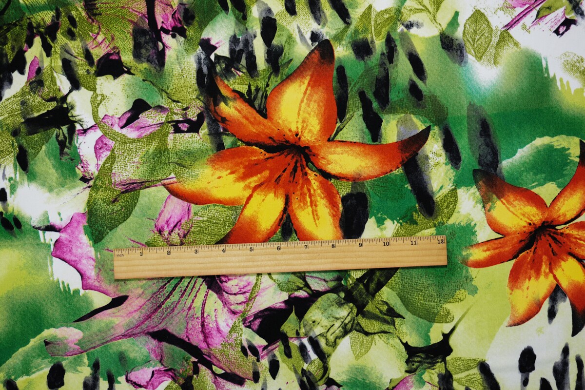 Green-Multi Poly Stretch Floral Printed ITY Jersey Knit Fabric By the Yard
