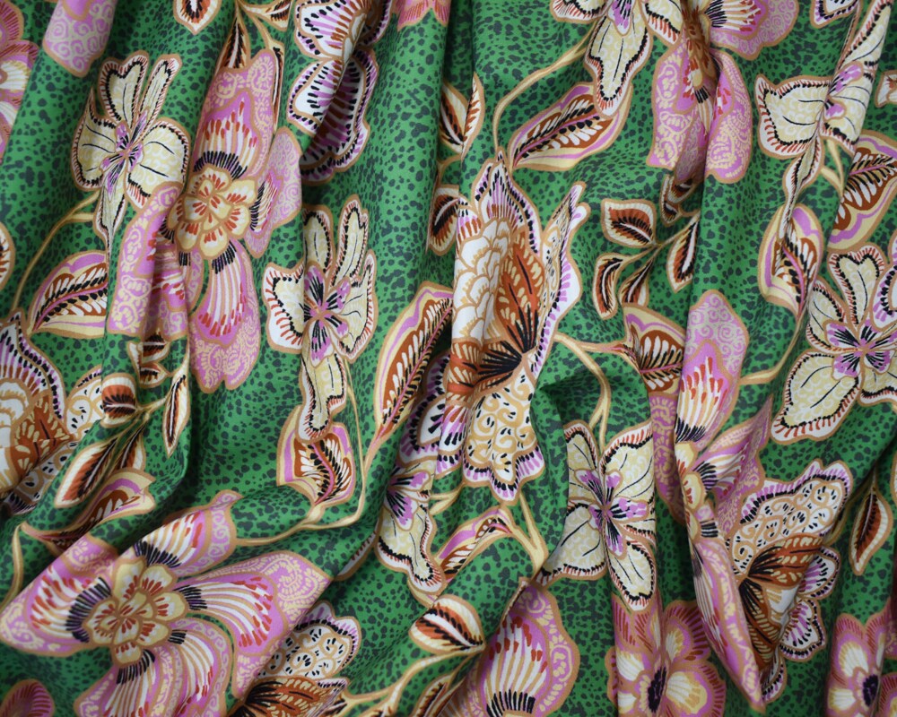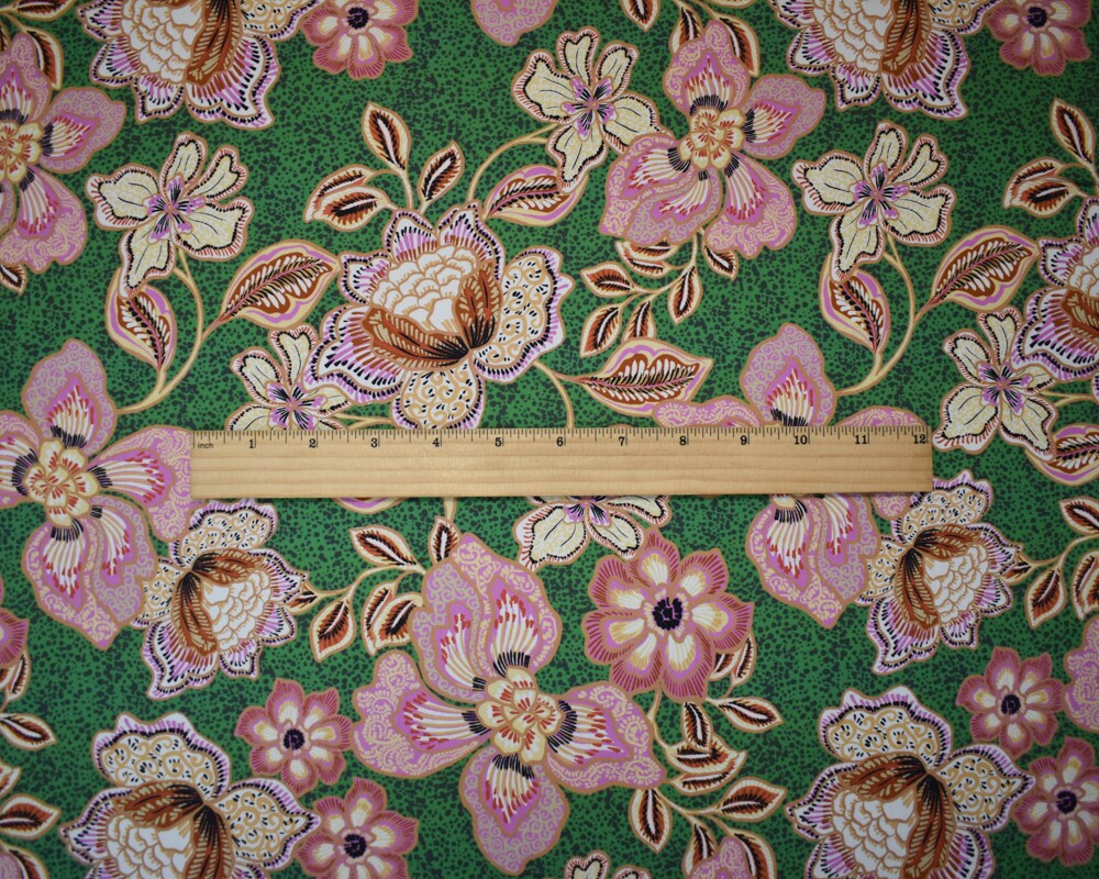 Green-Pink-Multi Cotton Floral Printed Broadcloth Woven Fabric By the Yard