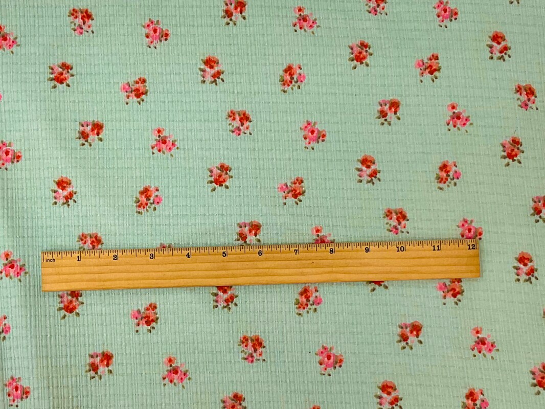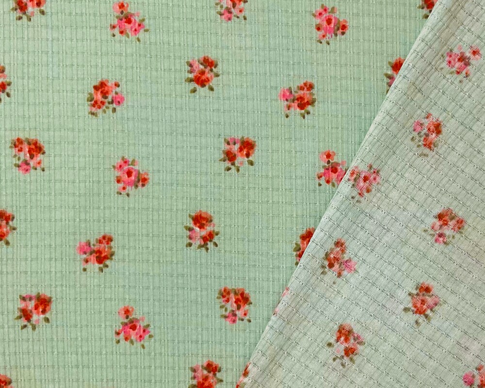 Green-Pink-Red Poly Blend Stretch Floral Printed Rib Knit Fabric By the Yard