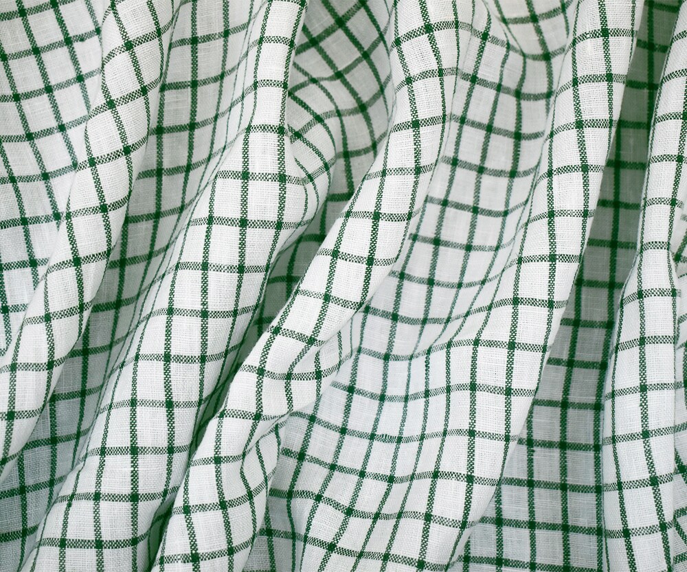 Green-White Moygashel Washed Grid Check Irish Linen Woven Fabric By the Yard