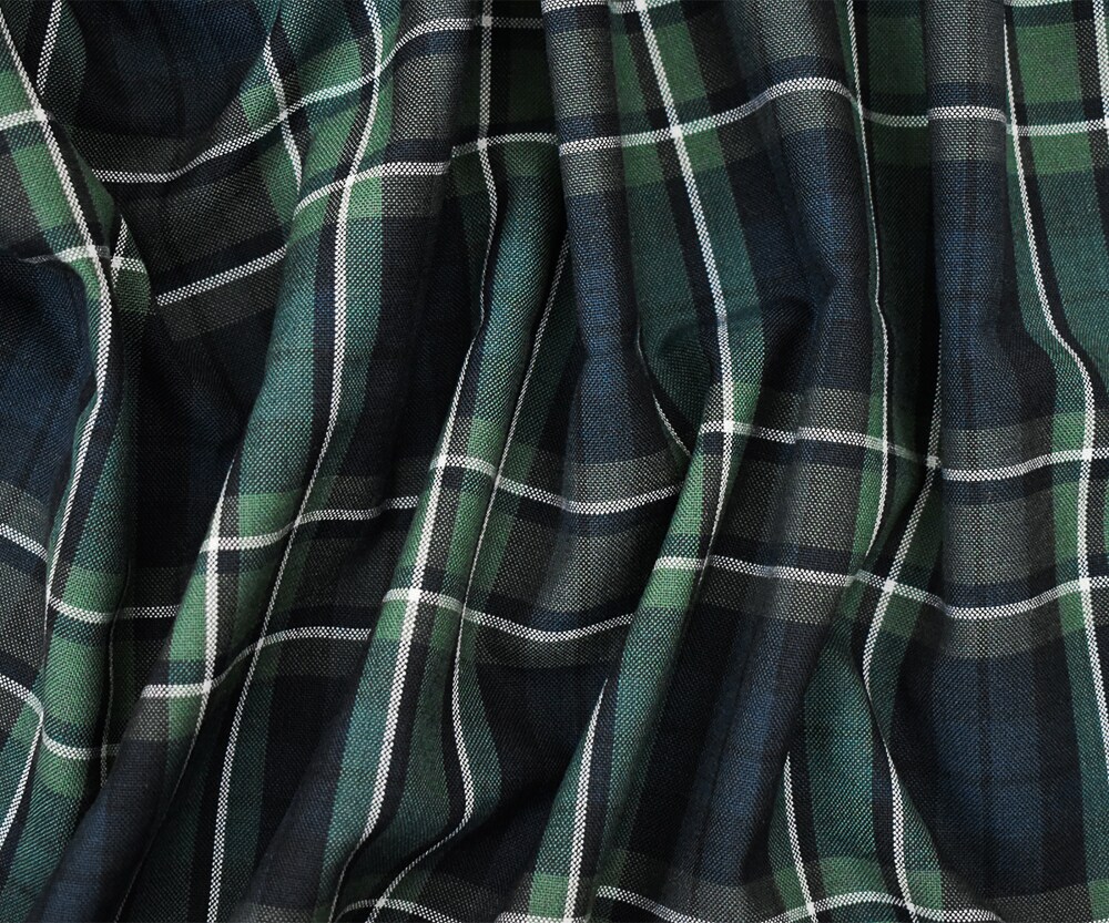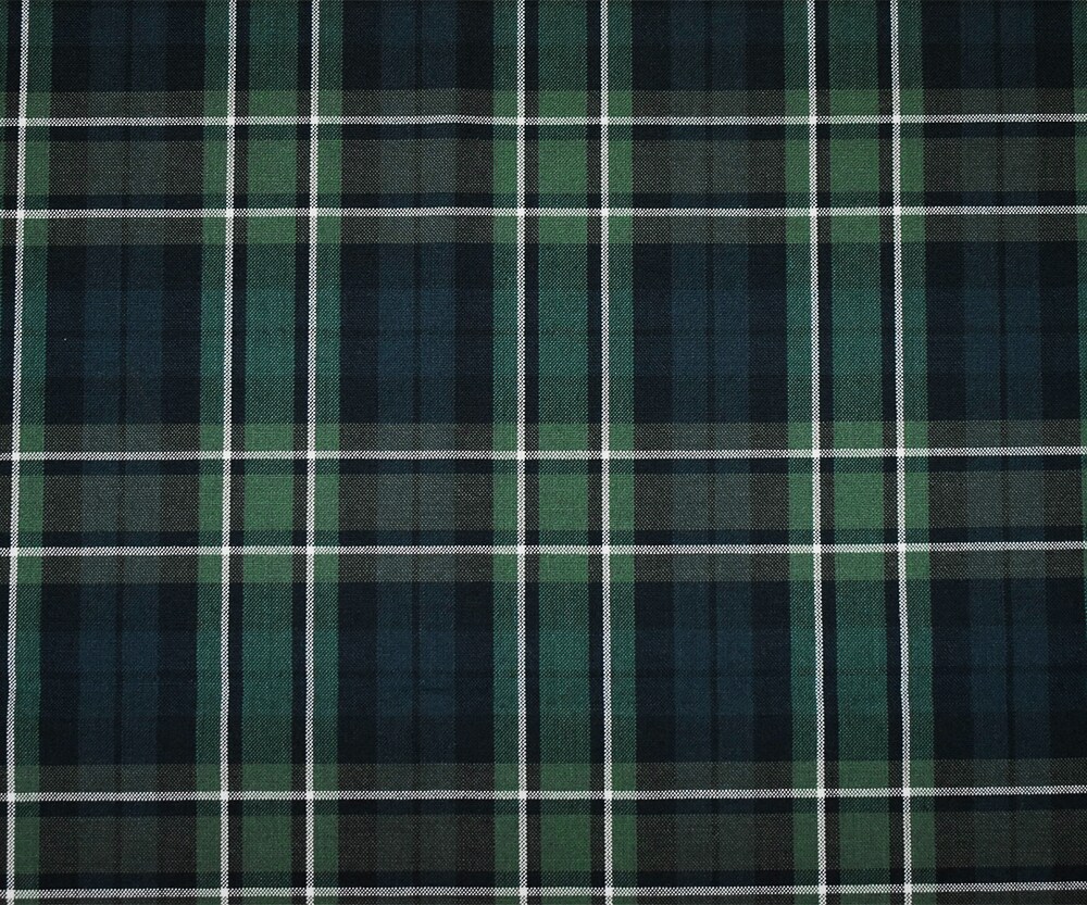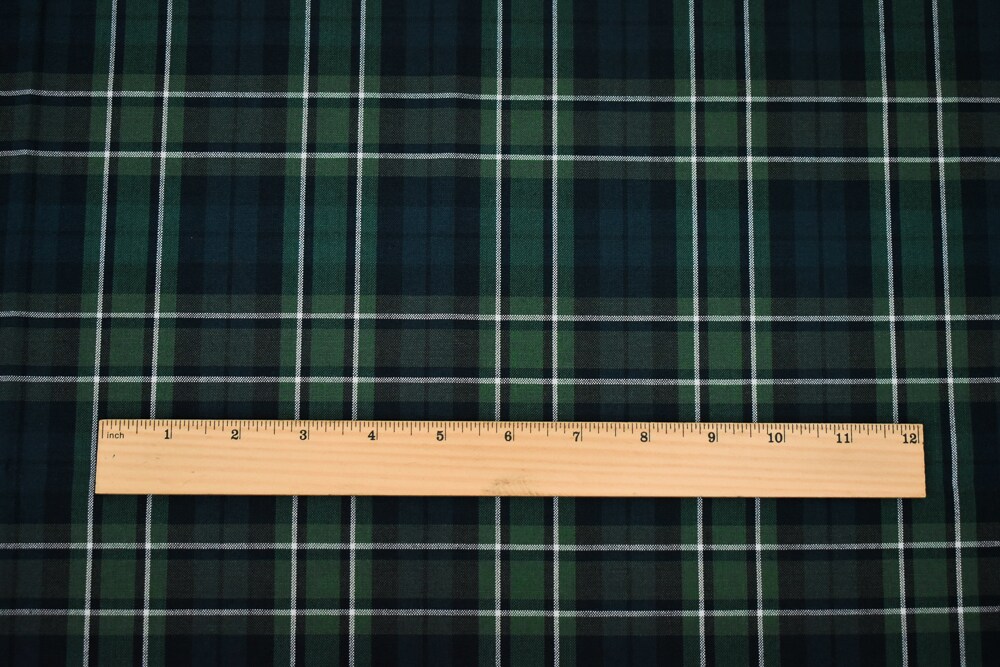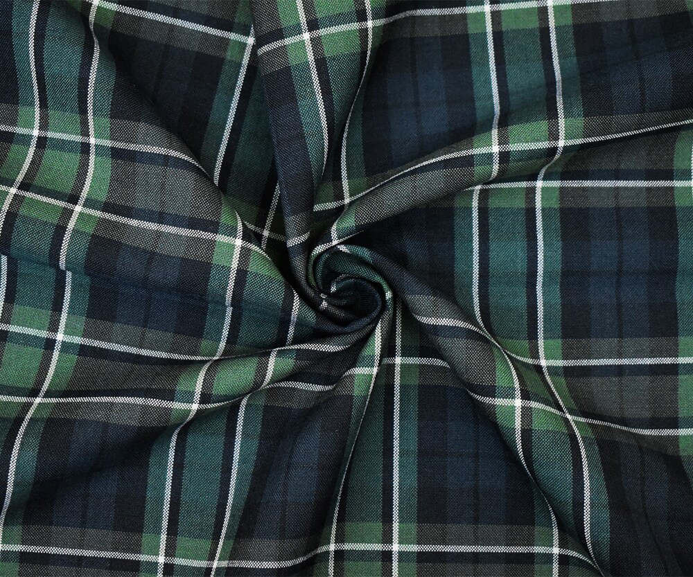 Green-White-Multi Poly Wool Plaid Shirting Woven Fabric By the Yard