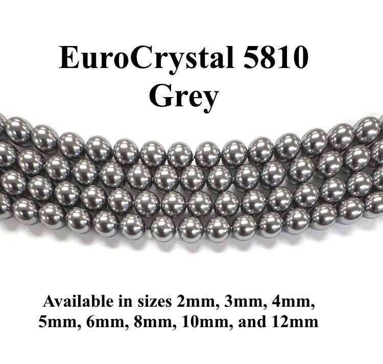 Grey EuroCrystal 5810 Round Pearls - 2mm, 3mm, 4mm, 5mm, 6mm, 8mm, 10mm, and 12mm - Strands - Made in Austria