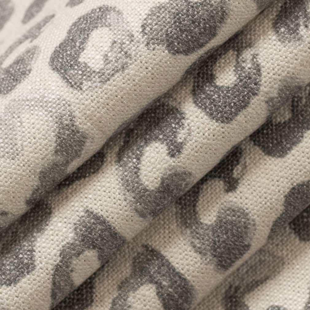 Grey Leopard Animal Print Linen Look Upholstery Fabric by The Yard - SKU: Petra Smoke