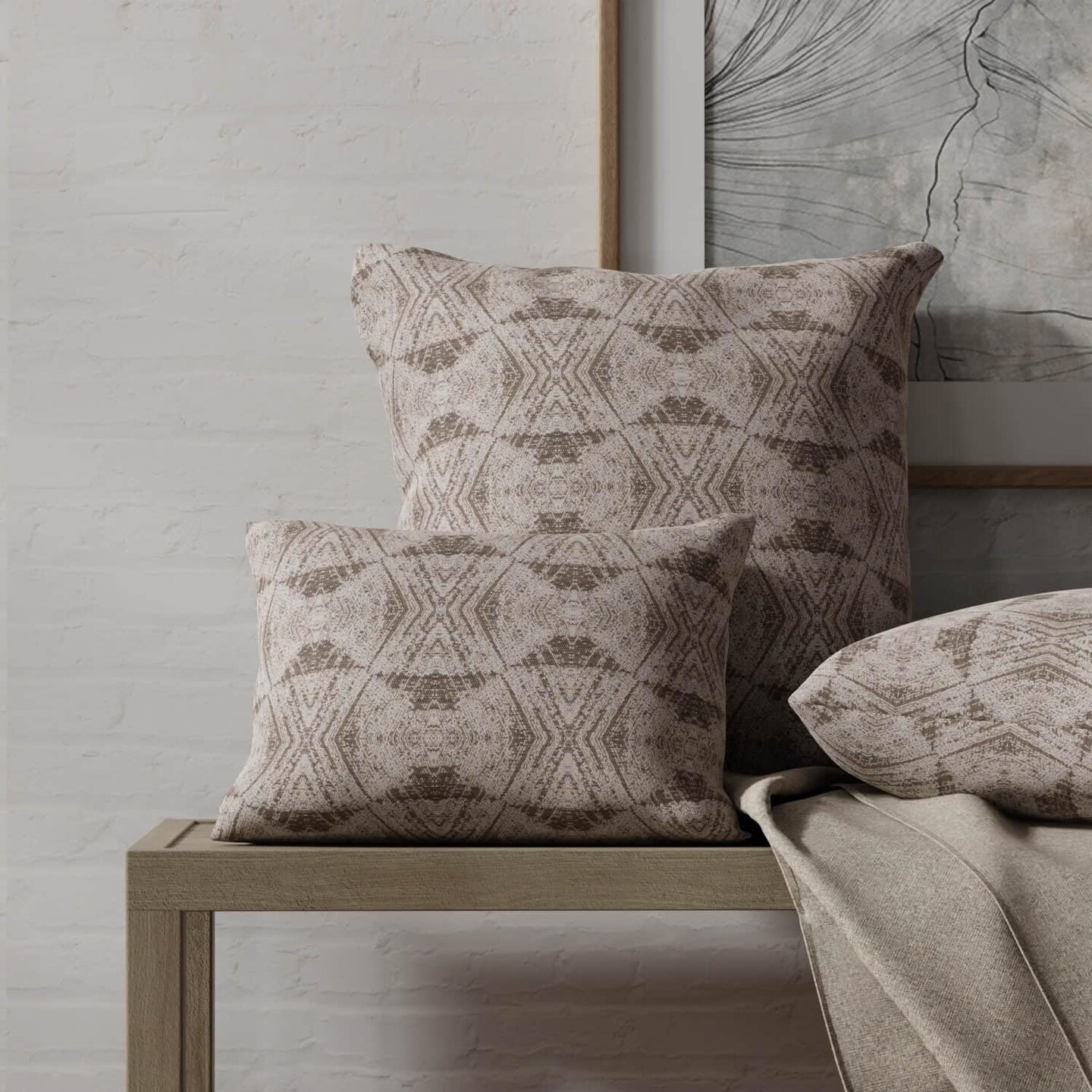 Grey Stain Resistant Performance Pet Friendly Abstract Diamond Global Woven Pattern Upholstery Fabric by The Yard - SKU: Johanna Flannel