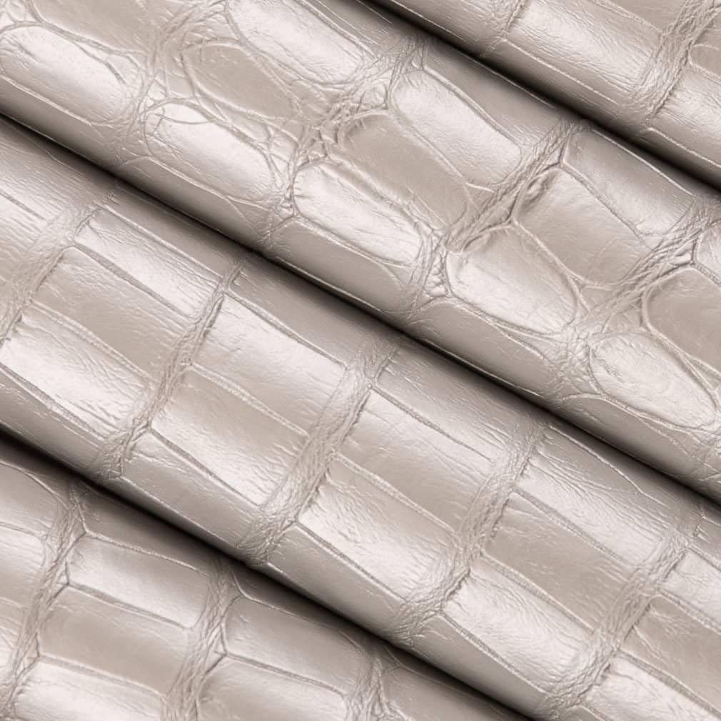 Grey Stain Resistant Performance Pet Friendly Animal Print Vinyl Upholstery Fabric by The Yard - SKU: Melina Chrome