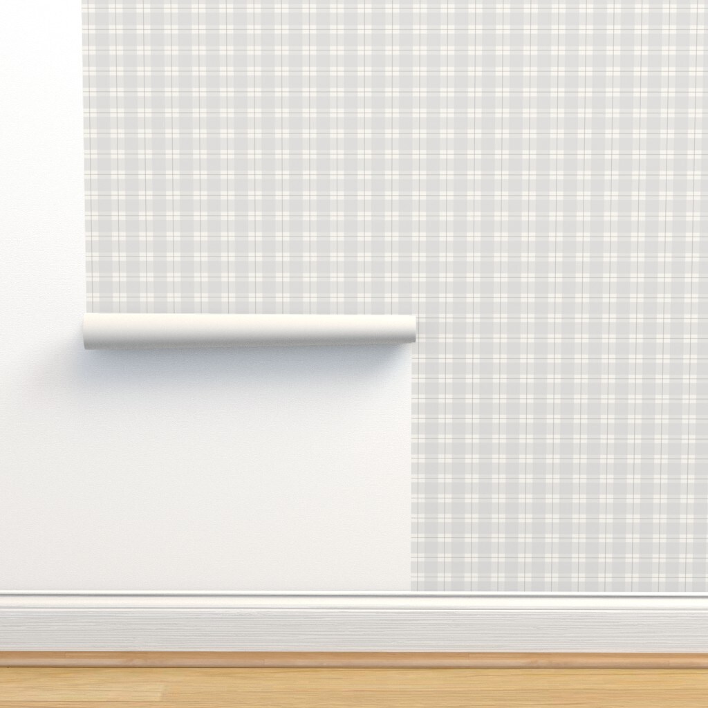 Grey Tartan Cottagecore Farmhouse Neutral Coastal Gray Plaid Boho Chic Calm Tranquil Custom Pre-pasted Wallpaper by Spoonflower Pre-Pasted Wallpaper 2FT Wide