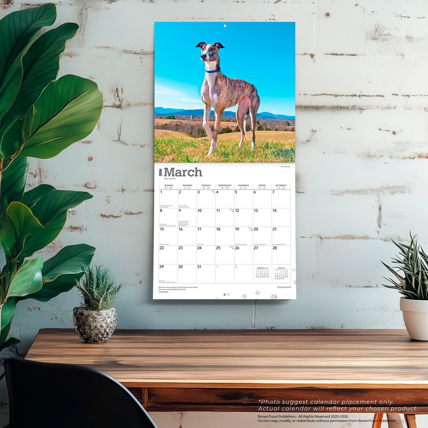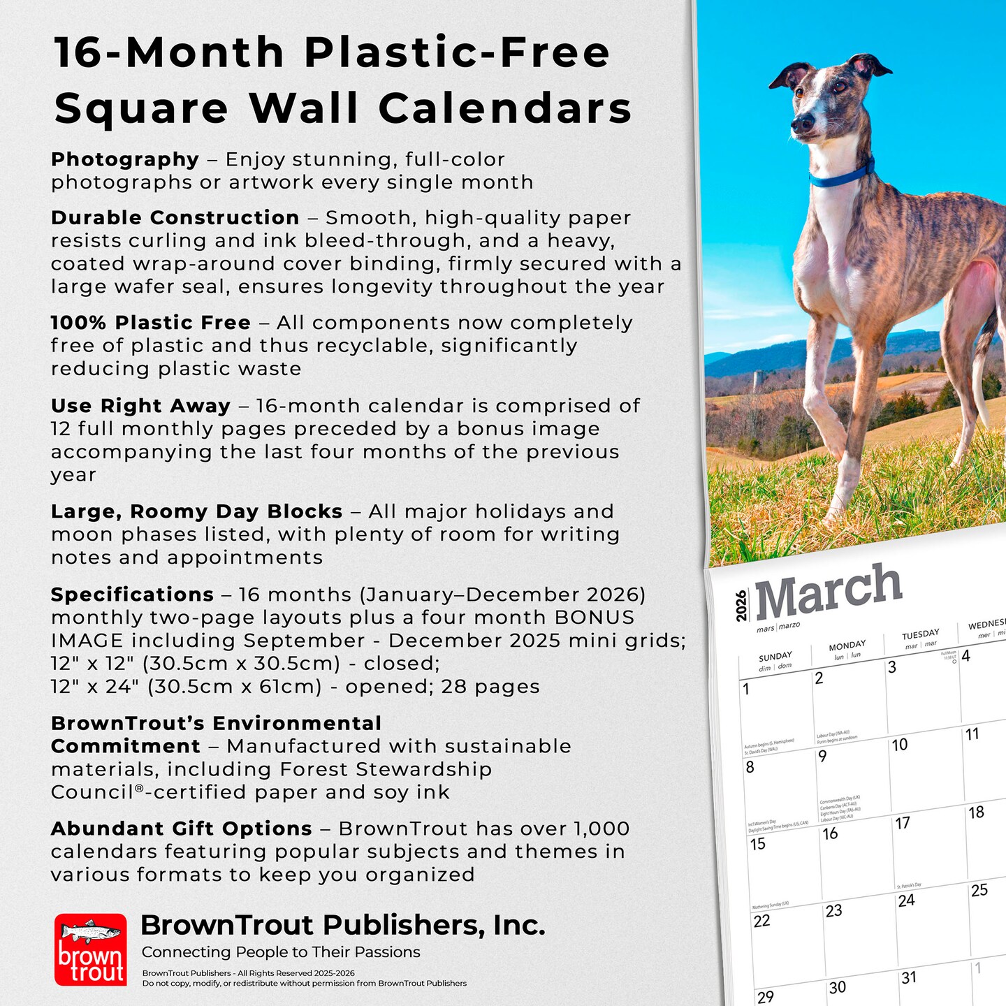 Greyhounds | 2026 12 x 24 Inch (Hanging) Monthly Square Wall Calendar | Plastic-Free