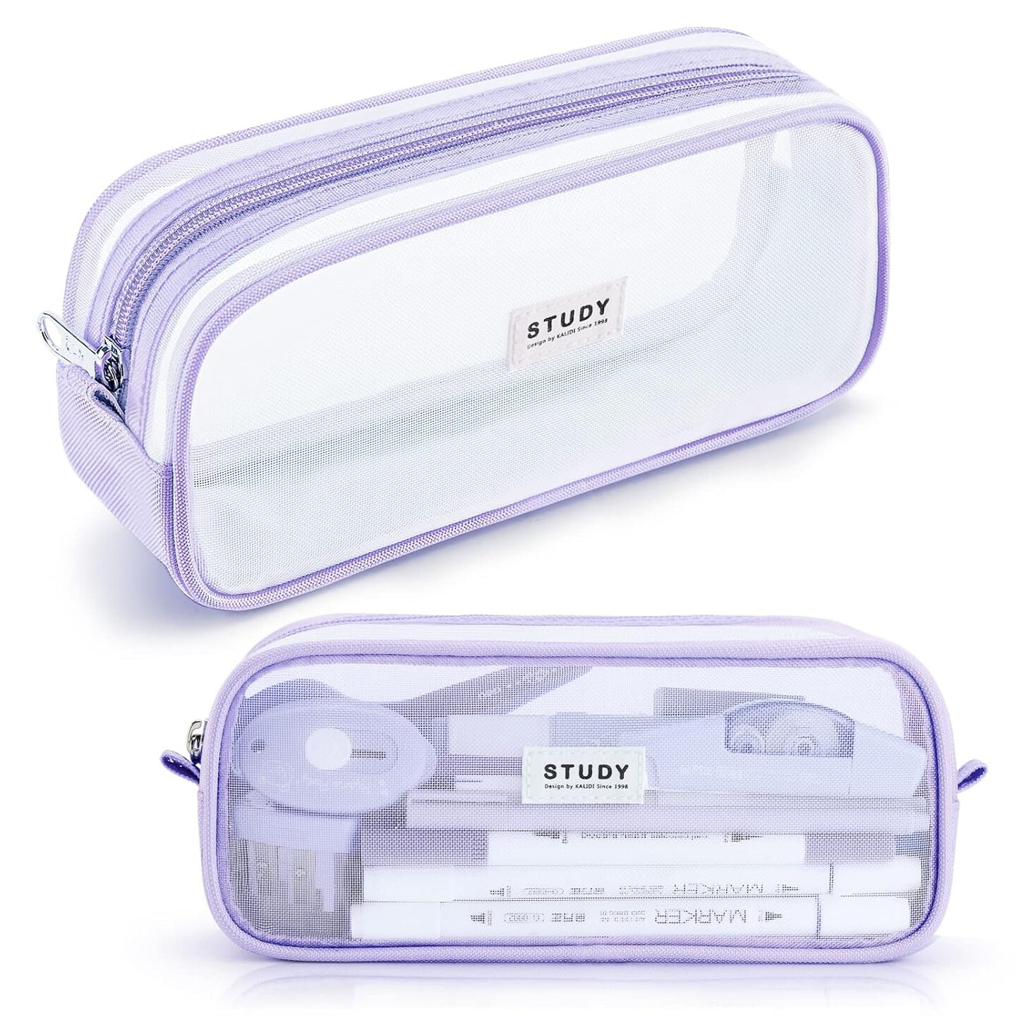 Grid Mesh Pencil Case Large Capacity Pencil Case Big Pencil Pouch With Zipper Simple Stationery Bag Aesthetic Pen Bag for School Teen Girl Boy Multi-Purpose bag for office Men Women