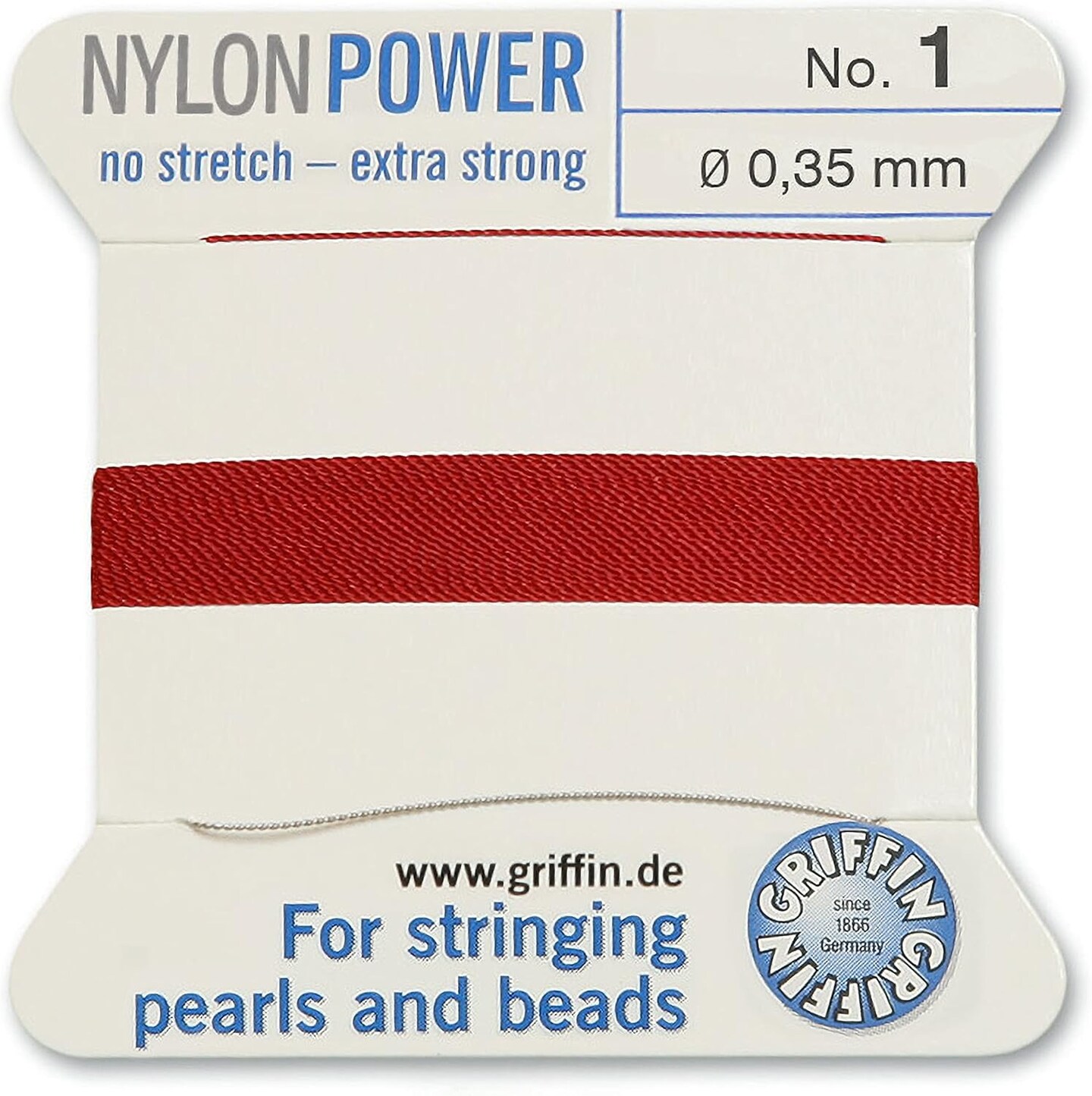 Griffin Nylon Bead Cord Perlseide – Size 1 (0.35mm) – 2 Meters per Card – Stainless Steel Needle Attached – for Knotting Pearls, Gemstones, Crystals and Beads