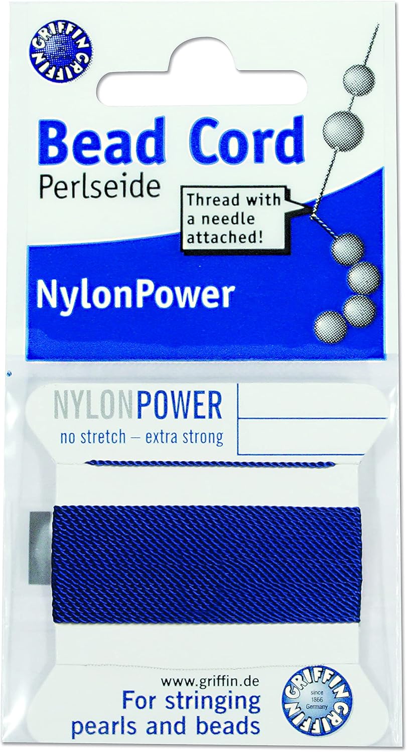 Griffin Nylon Bead Cord Perlseide – Size 16 (1.05mm) – 2 Meters per Card – Stainless Steel Needle Attached – for Knotting Pearls, Gemstones, Crystals and Beads
