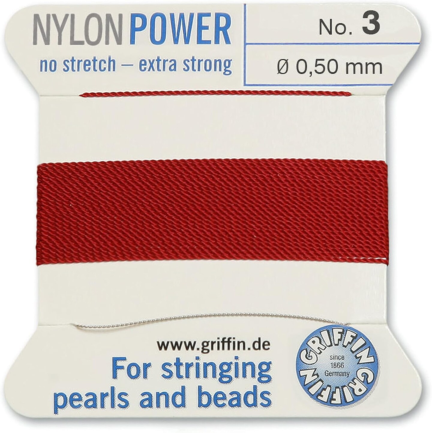 Griffin Nylon Bead Cord Perlseide – Size 3 (0.50mm) – 2 Meters per Card – Stainless Steel Needle Attached – for Knotting Pearls, Gemstones, Crystals and Beads