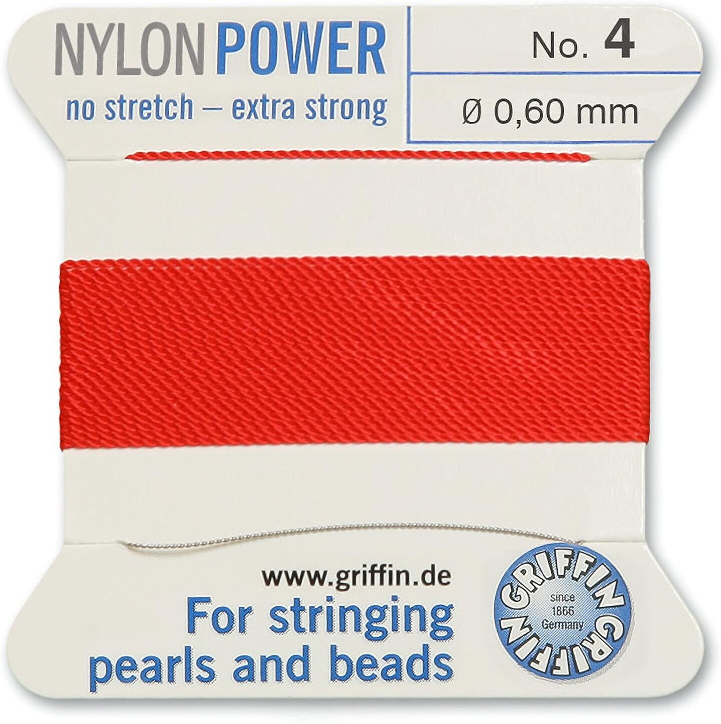 Griffin Nylon Bead Cord Perlseide – Size 4 (0.60mm) – 2 Meters per Card – Stainless Steel Needle Attached – for Knotting Pearls, Gemstones, Crystals and Beads