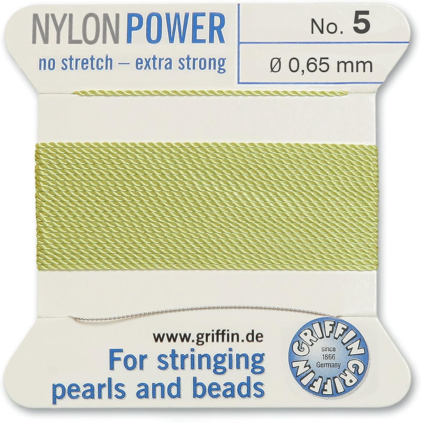 Griffin Nylon Bead Cord Perlseide – Size 5 (0.65mm) – 2 Meters per Card – Stainless Steel Needle Attached – for Knotting Pearls, Gemstones, Crystals and Beads