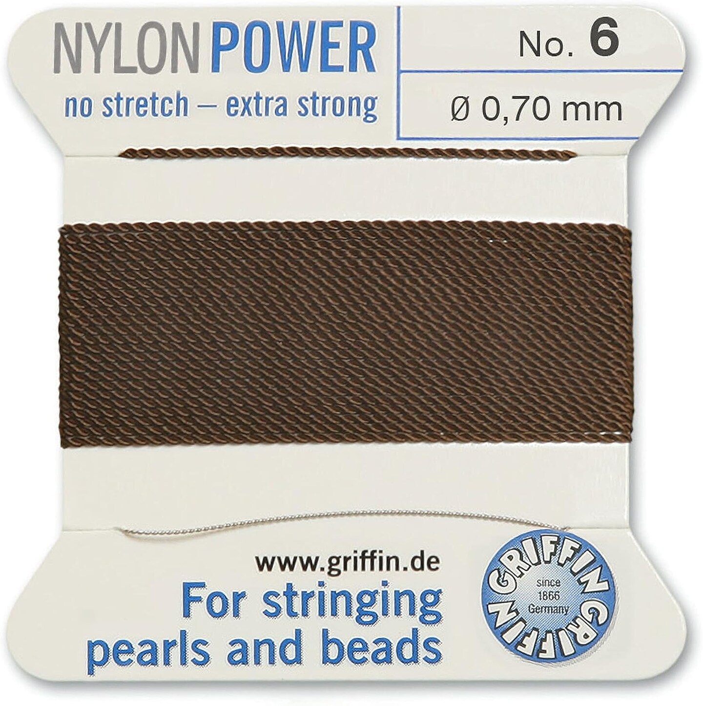 Griffin Nylon Bead Cord Perlseide – Size 6 (0.70mm) – 2 Meters per Card – Stainless Steel Needle Attached – for Knotting Pearls, Gemstones, Crystals and Beads