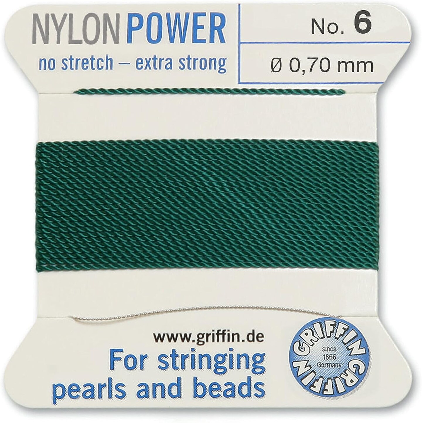 Griffin Nylon Bead Cord Perlseide – Size 6 (0.70mm) – 2 Meters per Card – Stainless Steel Needle Attached – for Knotting Pearls, Gemstones, Crystals and Beads