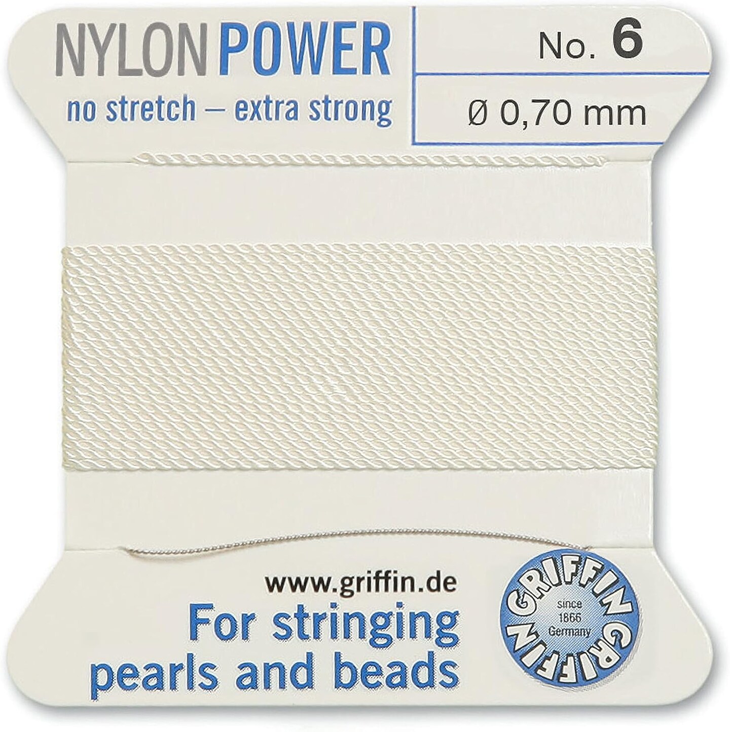 Griffin Nylon Bead Cord Perlseide – Size 6 (0.70mm) – 2 Meters per Card – Stainless Steel Needle Attached – for Knotting Pearls, Gemstones, Crystals and Beads